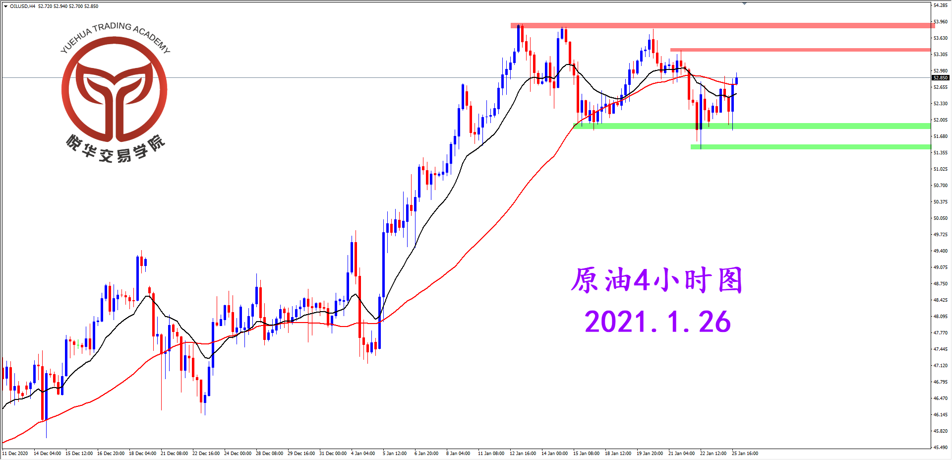 保持多头思路,耐心等待天图级别坚决阳线突破53.91后的多头机会。
