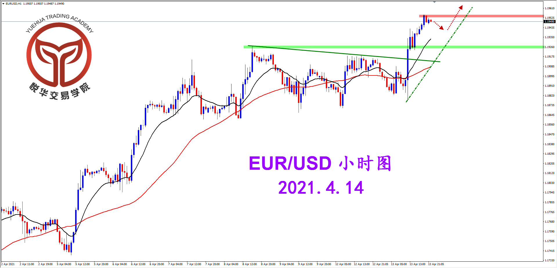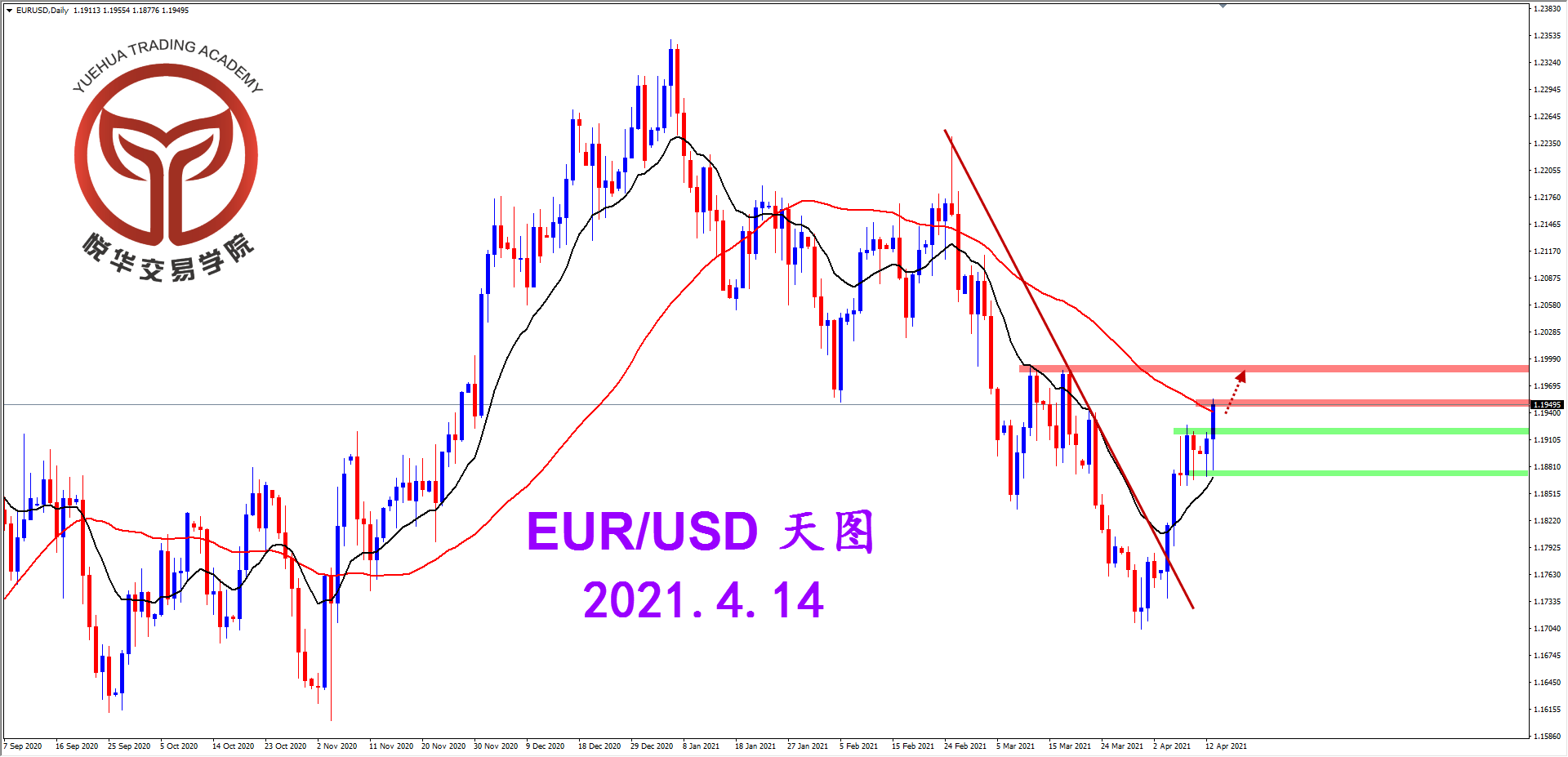 欧美天图,昨天行情探底后凭借支撑作用企稳拉升,收出坚决阳线,短线多头占据主导,日内有机会继续向上,关注一次高概率的破位多头机会,目标位置先看1.1988一带。
