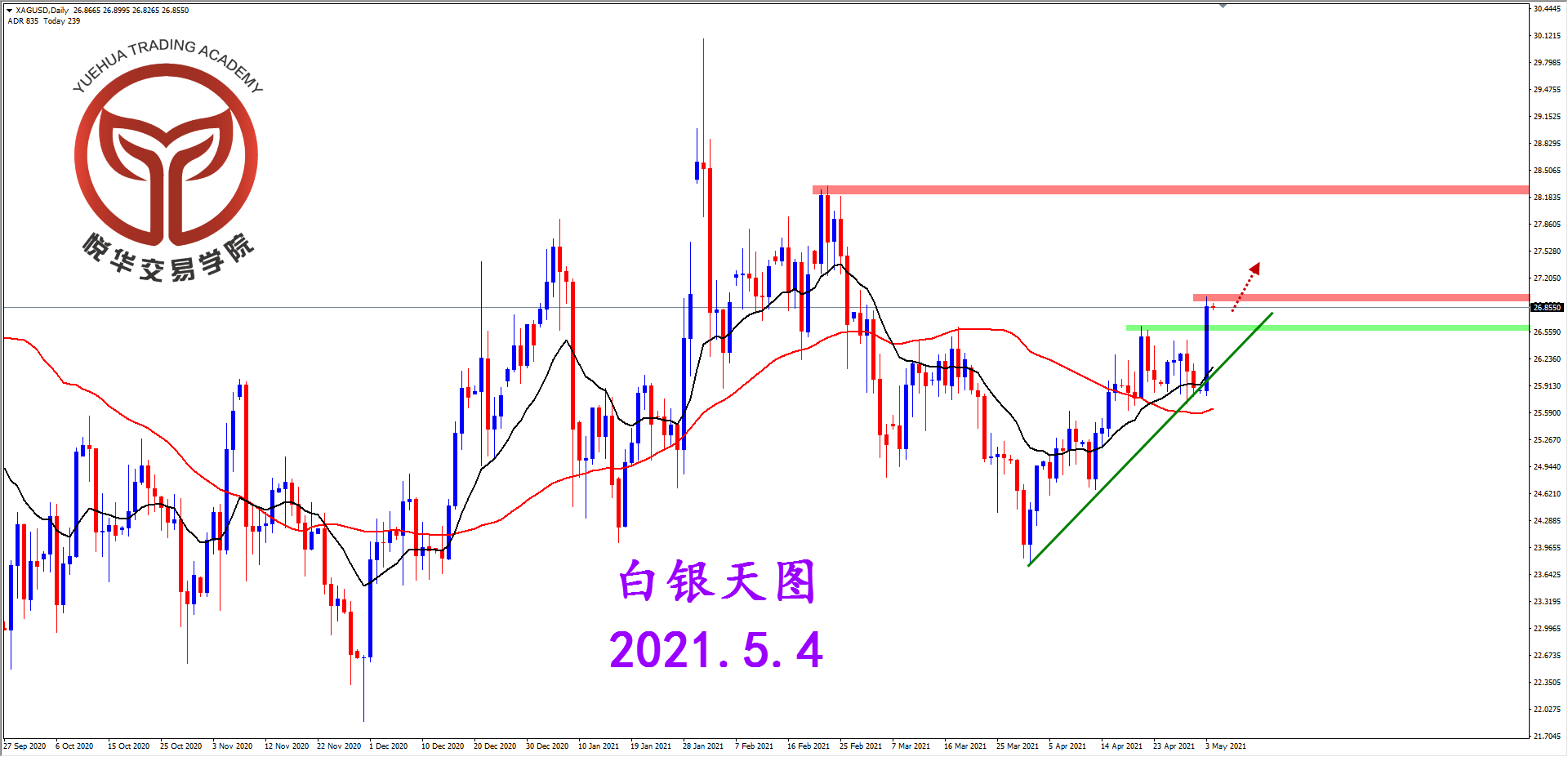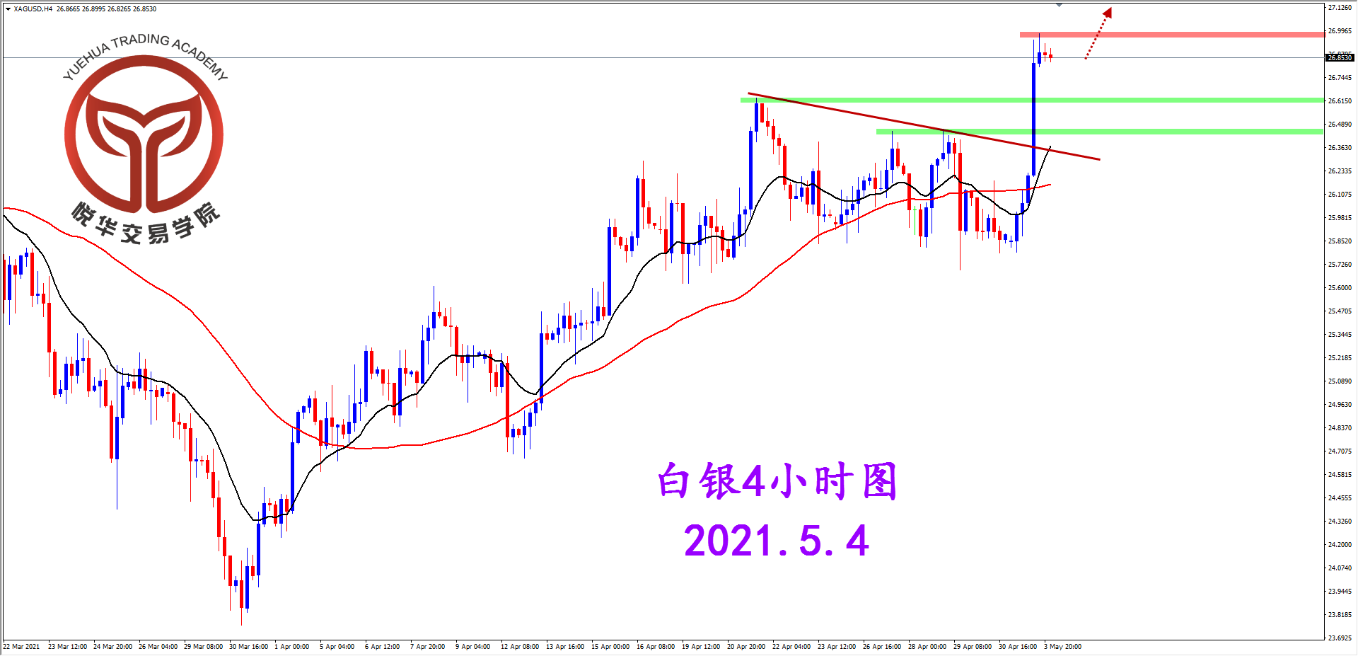 白银天图,昨天行情收出坚决破位大阳线,突破了关键压力位置,奠定了多头方向,有继续走强的机会,后市等待调整后关注合理的做多机会就好。