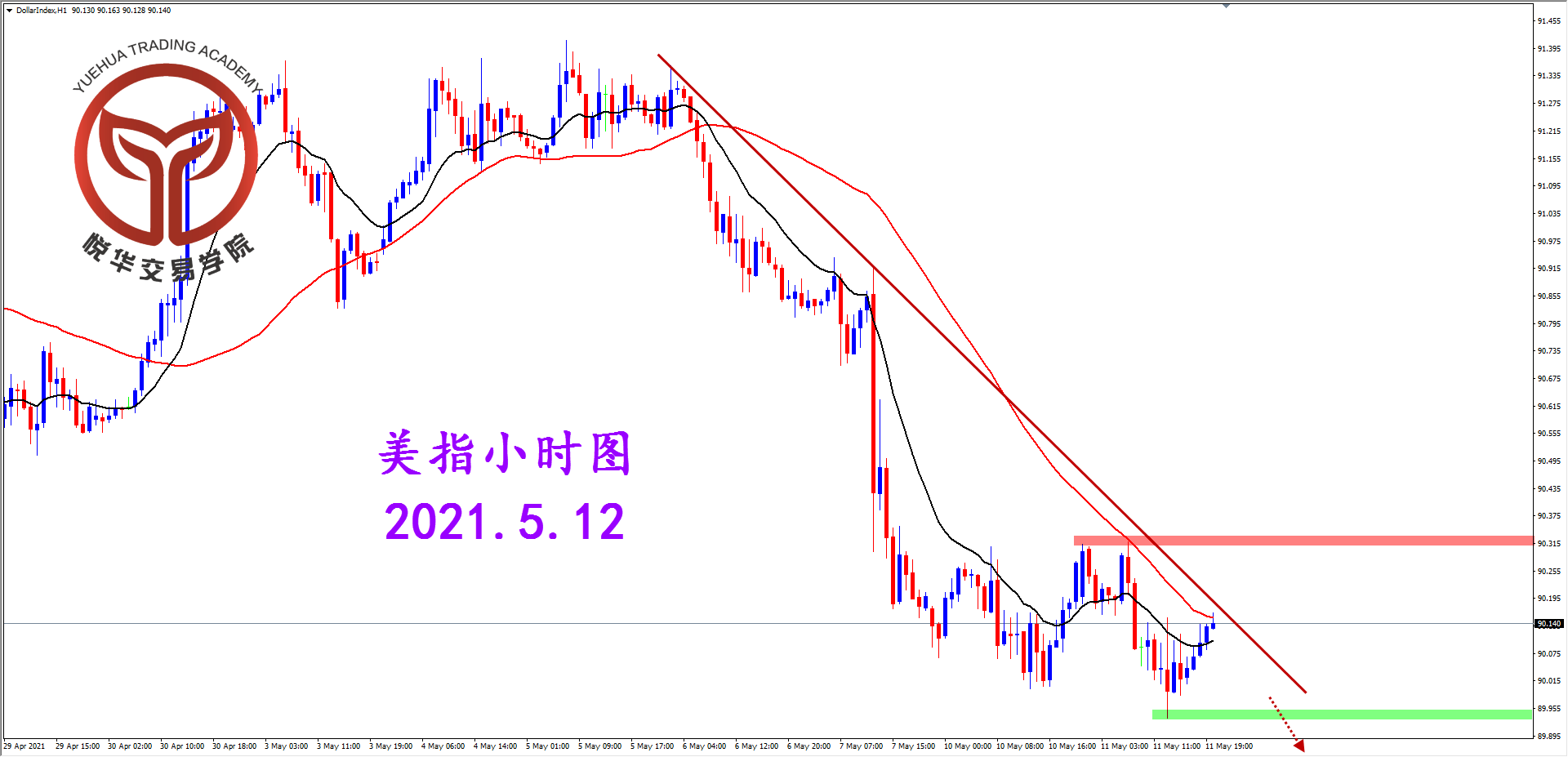 美指小时图,短线市场噪音更加明显,震荡调整没有明显方向,耐心等待密切关注在压力线的表现,关注坚决阴线破位后的空头机会。