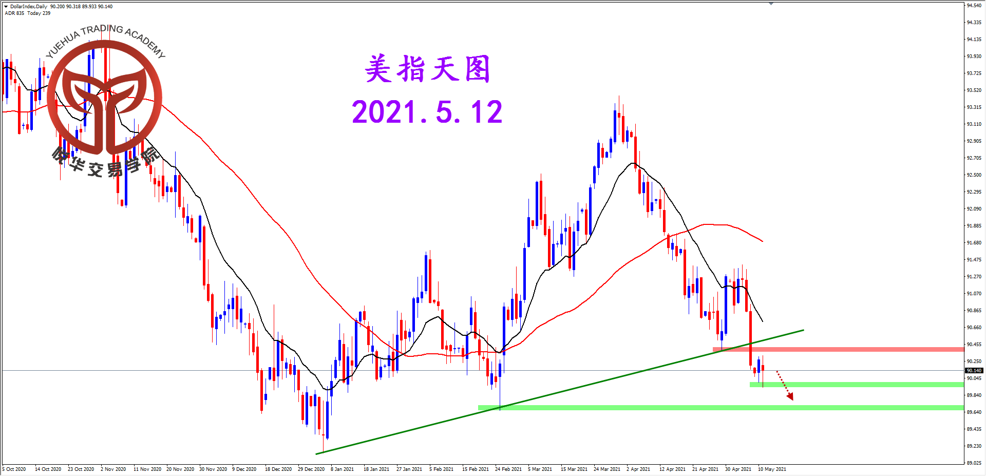 美指天图,昨日行情调整了一天时间,虽然下跌动能暂时不足但空头格局并未改变,还是需要保持空头思路,但在市场继续走弱前只能谨慎观望,等待市场获得足够下跌动能后才去开始做空美指。