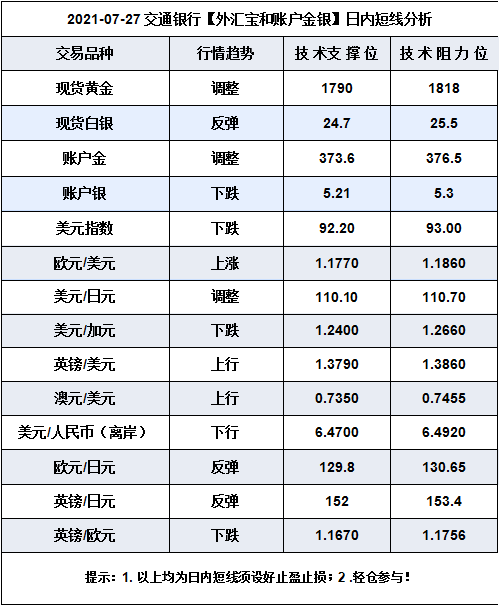 欧元区 对欧元昨晚走势形成影响的因素主要有,一项调查显示由于持续的供应链担忧和新冠病毒感染病例上升,德国7月企业景气判断指数意外下降;伊福经济研究所(Ifo)公布,德国7月IFO企业景气判断指数为100.8,低于6月修正后的101.7,当然也低于市场预期的102.5。但是对欧元影响较小,美元的回落提供了欧元反弹的动能。