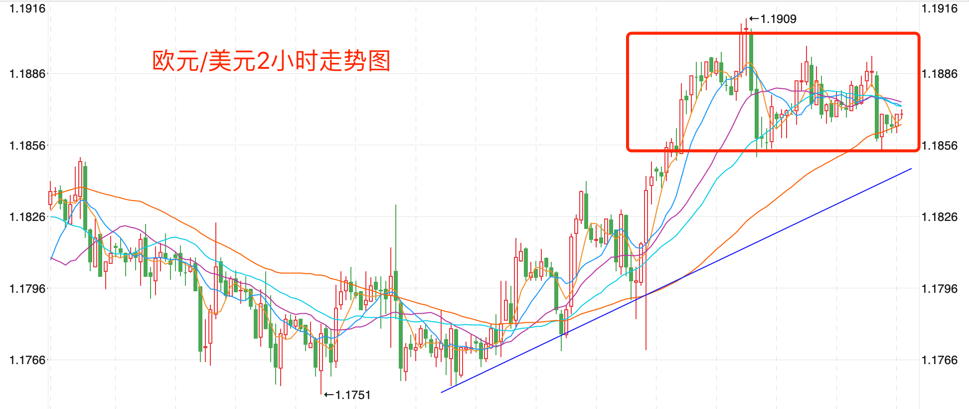 前期自2020年3月底企稳1.0635低点开启上涨走势;2021年1月触及1.23495点的高位后持续震荡下行。当前走势是回落企稳1.17点的中长期多空分水岭的支持后,二次反弹走高触顶后中长期处在回落调整的下行走势中;汇价整体运行在MA200均线下方形成走低趋势。当前行情日内有测试1.1850的趋势,触底则反弹,跌破则延续下行趋势。