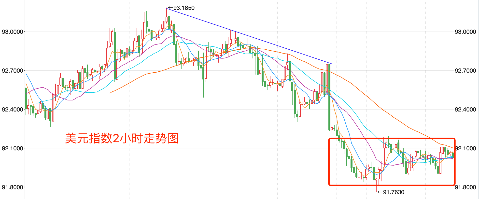 前期持续上涨创出102.99点的高位后一路震荡回落走低,触及89.206点的低位后,开始向上持续震荡走高;整体价格在MA200上方运行。中期走势继续保持震荡向上的走势,价格突破93点的关键阻力后打开上行空间。当前行情日内考验91.80点附近的关键支持,跌破则继续向下,不破继续反弹。