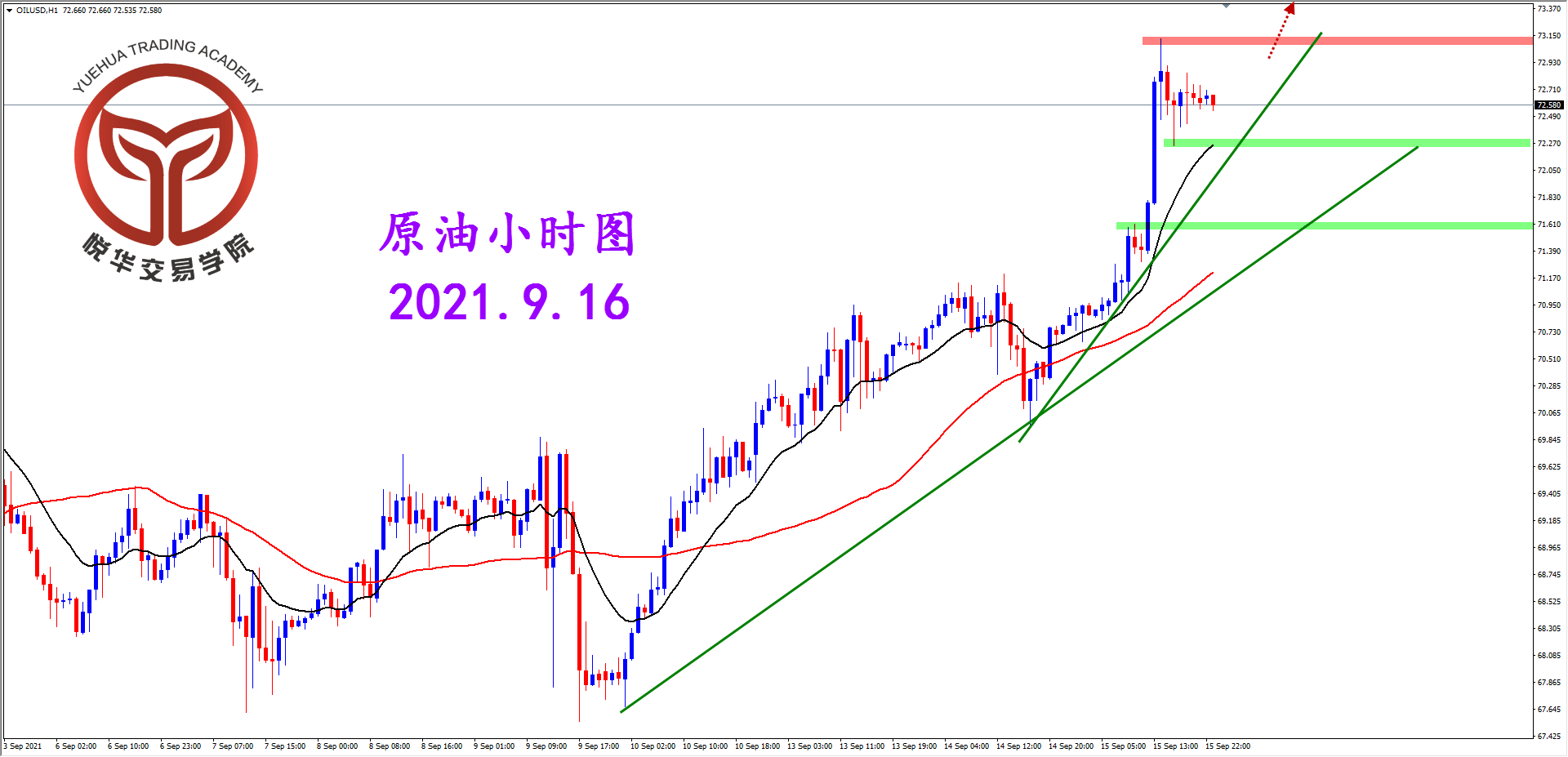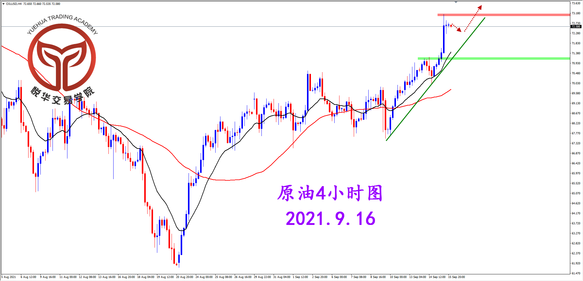 原油表现非常强势,坚决阳线表明多头动能强劲,所以一定不要猜顶做空行情,顺势关注多头才合理,而短线市场正在进行调整,保持耐心等待不要急于买入,注意交易节奏,目标位置先看74.20一带,如能持续突破则看更多空间。