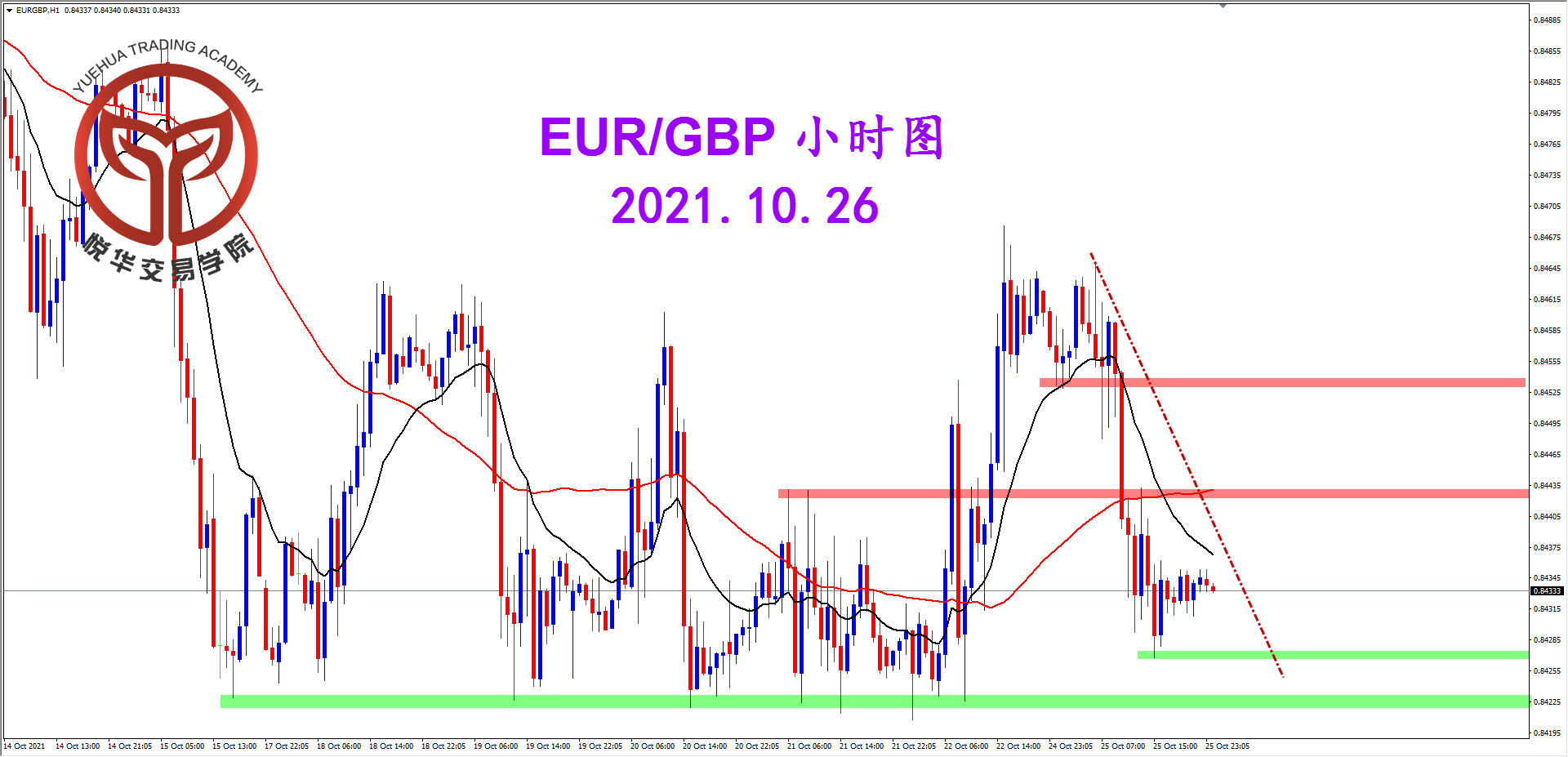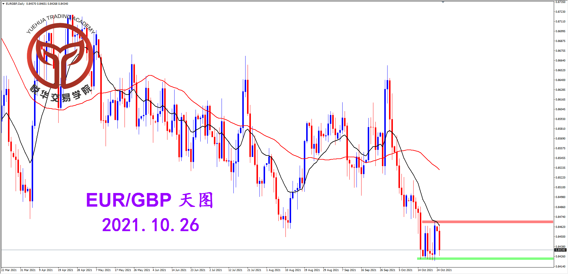 欧镑虽然在天图被15EMA压制走弱收出较为坚决的阴线,但在下方0.8420关键水平支撑带没有被坚决跌破前不要急于做空,等待该支撑被坚决跌破后才能关注,毕竟之前行情已经连续测试了多次都没有破位,所以该支撑相当关键,决定了后市的阶段性方向。