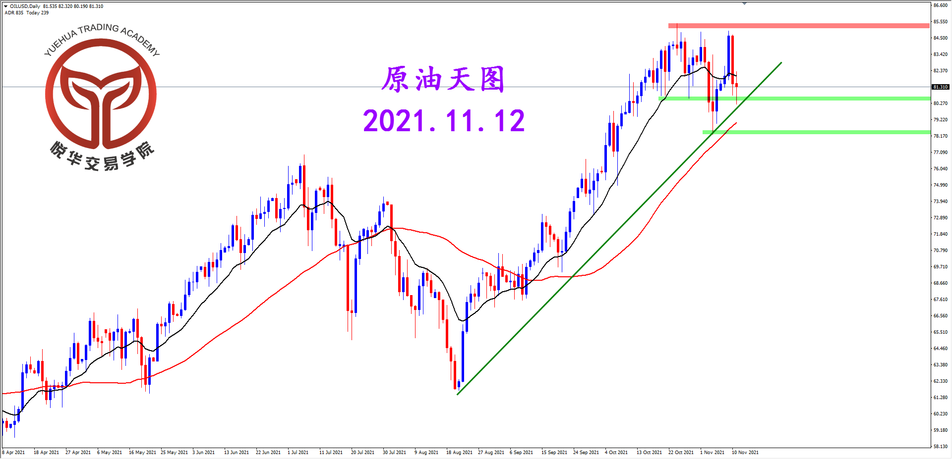 原油市场的月图的格局仍属于多头方向,只不过短线市场波动极端且震荡也极端,暂时无法突破85.40的水平压力位置,如果后市一旦突破该压制的话那么多头将要继续向上拉升。但在之前只能保持观望,市场波动随机性很强,不建议轻易尝试短线机会,避免不必要的风险。