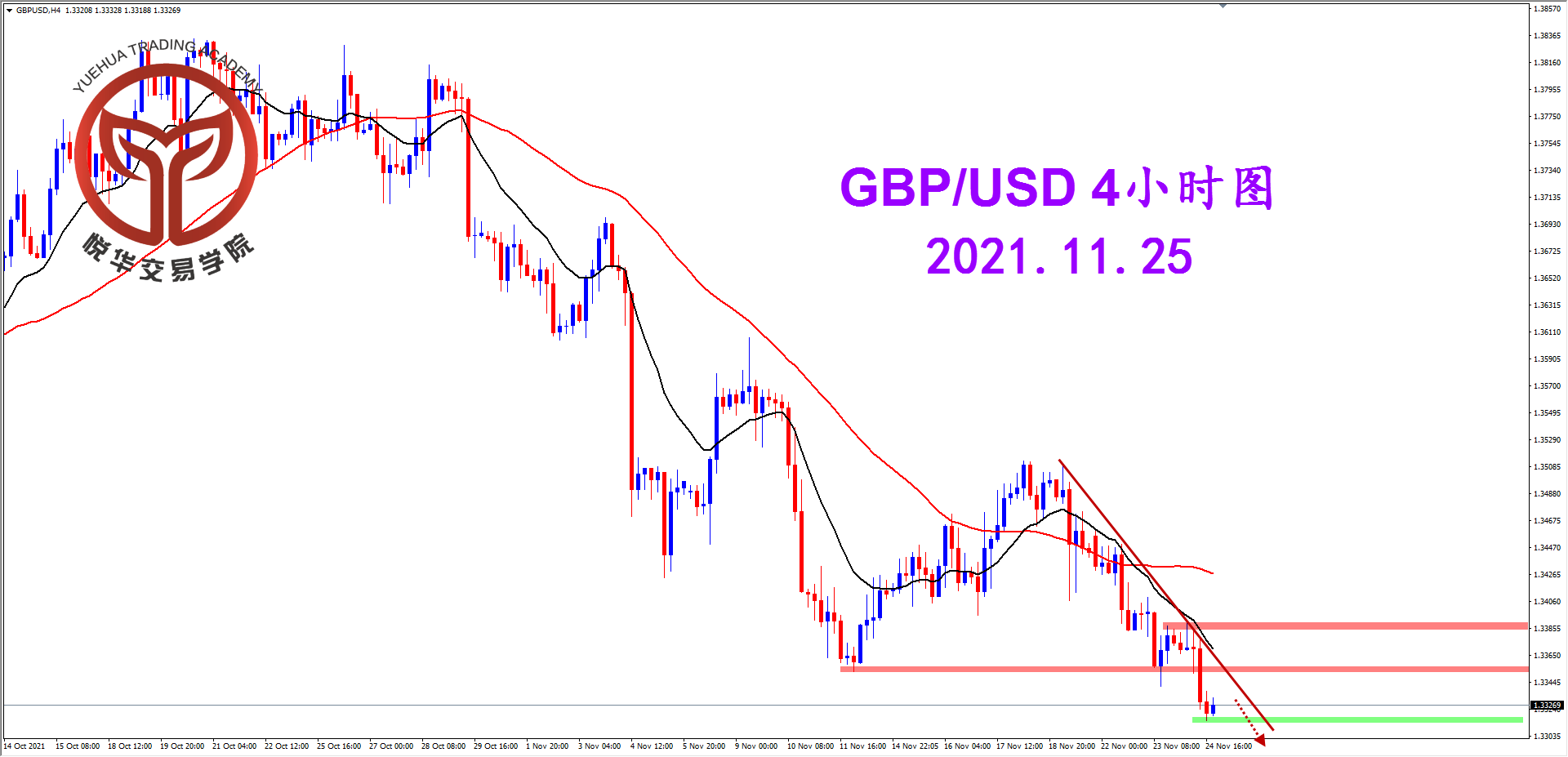 镑美虽然连续报收天图阴线且跌破了水平支撑,但毕竟连续的下跌释放出了很多动能,短期内能否保持持续动能输出还要看市场表现,如果在等待机会的过程中市场大幅拉升反弹则观望为主。