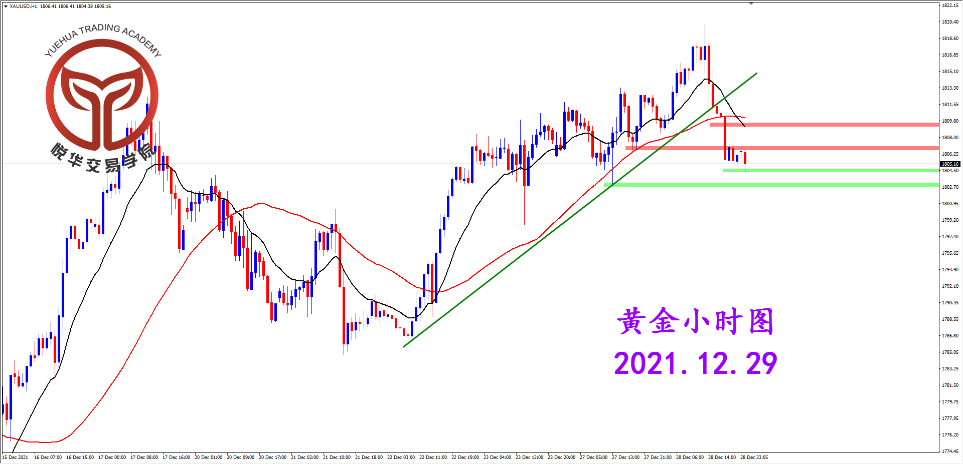 现货黄金小时图,昨日晚盘出现了一次高概率的做多机会,但行情却没有如期拉升走强,而是冲击到1820.0一带后遭遇空方疯狂打压,最终行情快速下跌走弱,目前跌破了支撑,暂时不要再去做多黄金,耐心等待市场调整。