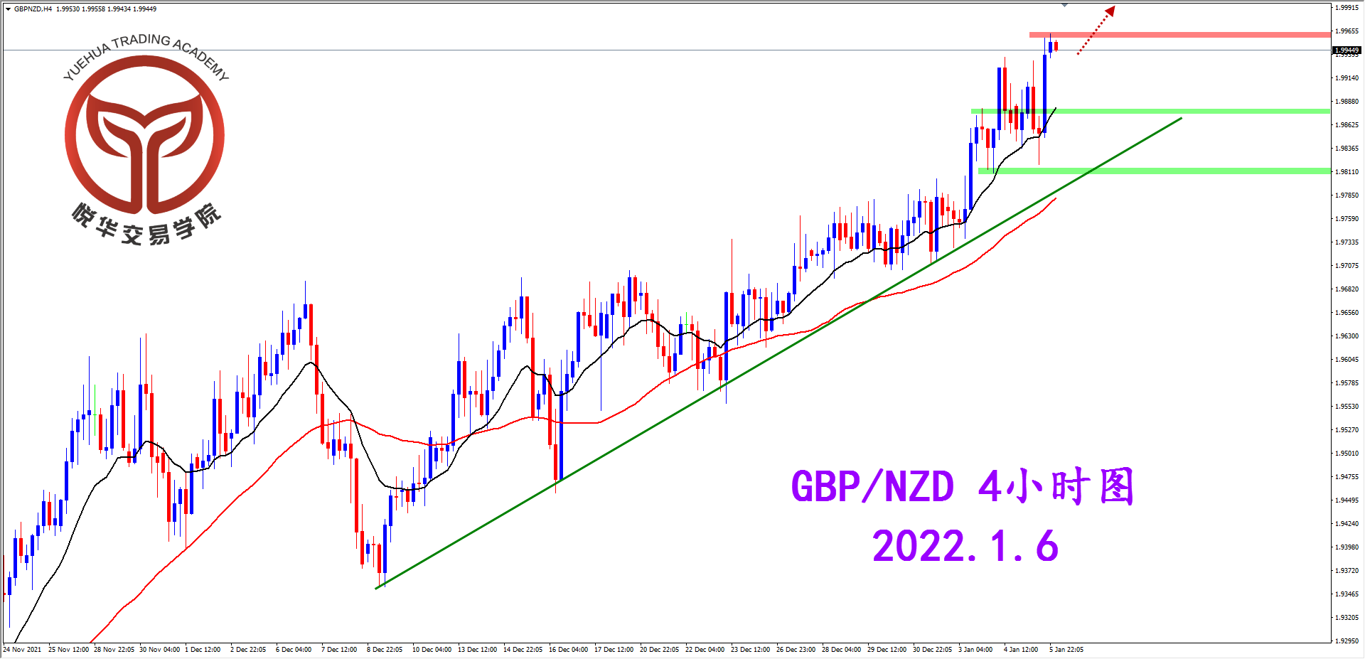做多思路,等待小时级别高位充分调整,凭借15EMA支撑以及1.9936水平支撑关注一次高概率的破位多头。