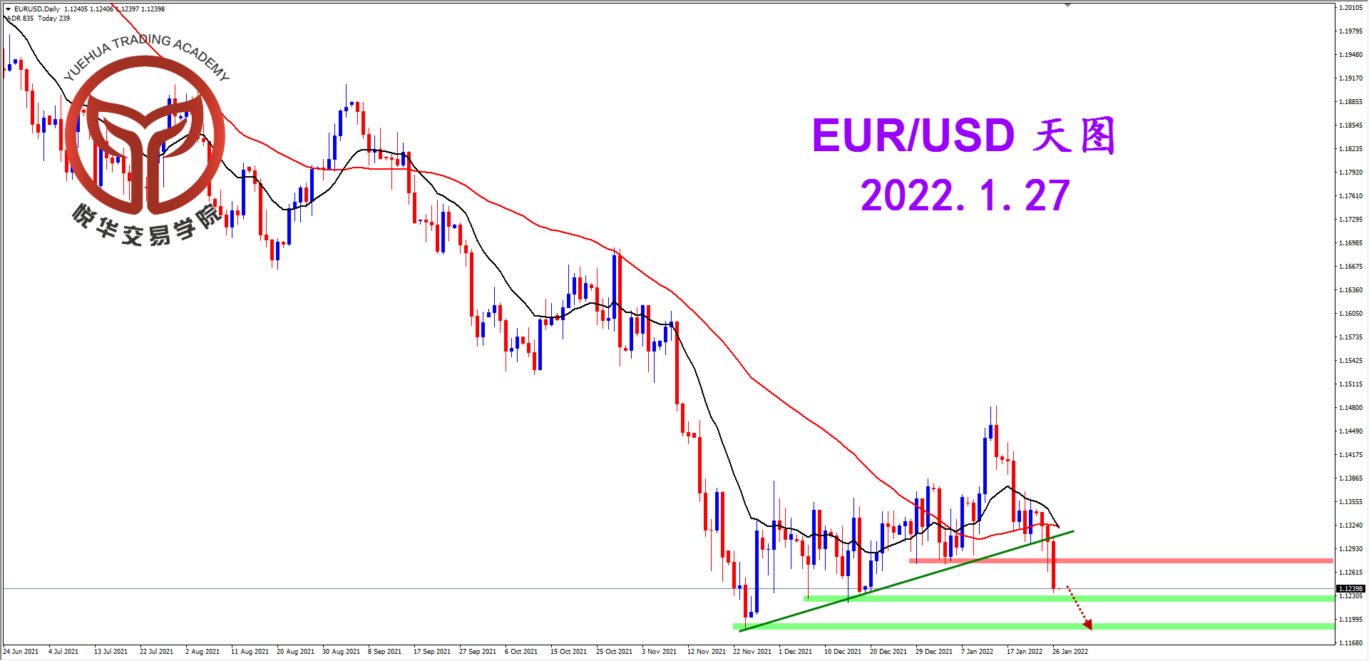 欧美经过相当久的调整后于昨日收出破位坚决大阴线,奠定了后市下跌基调,有要开始走弱的需求,投资者需要顺势而为的关注空头,甚至空头有坚决跌破天图低点的机会,而一旦坚决破位那么欧美有中线走弱机会。