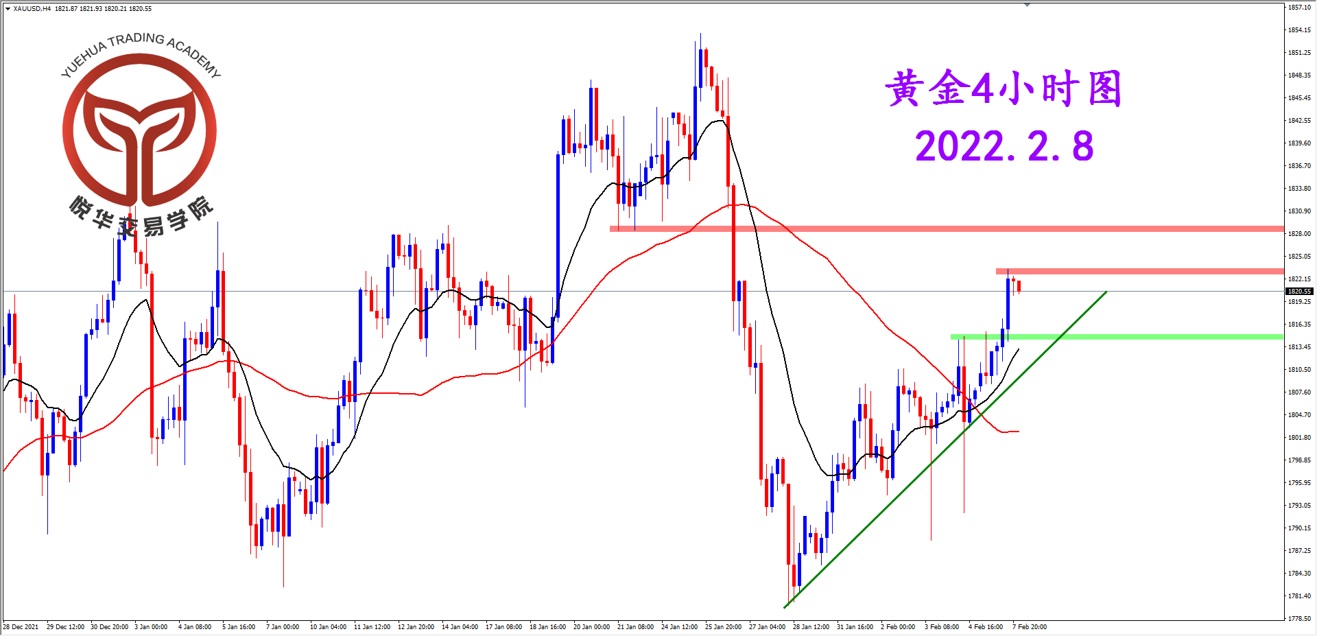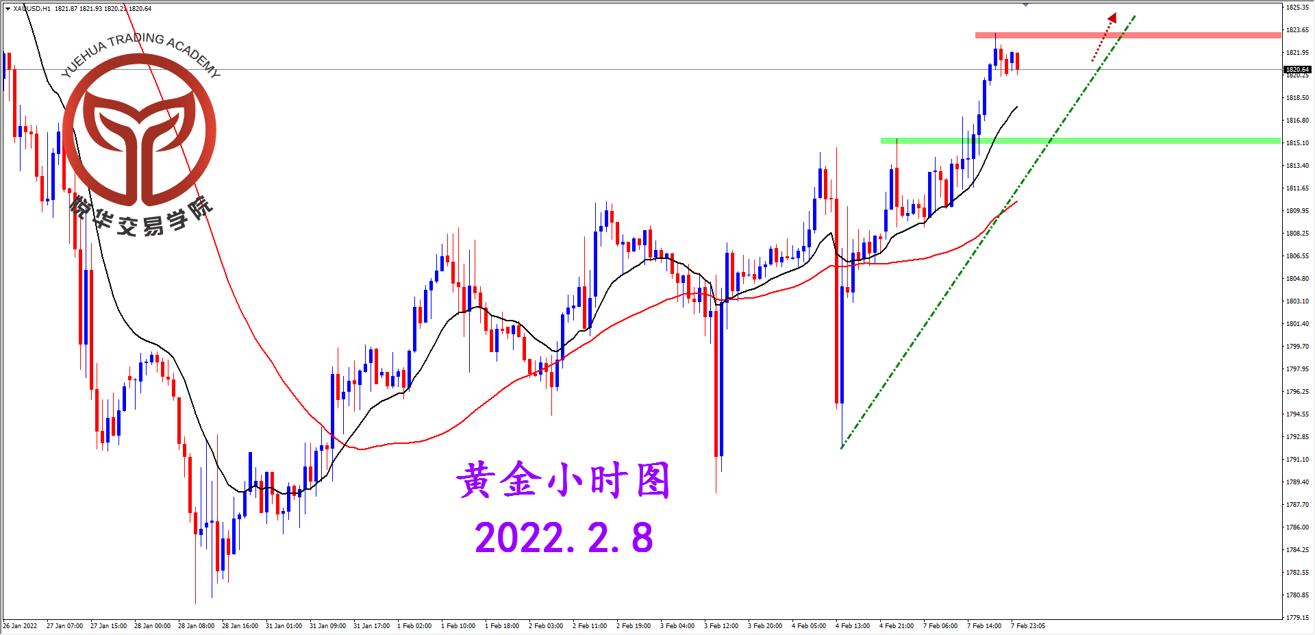 短线多头思路,等待小时级别的合理形态,目标位置先看1828.6一带,如能持续突破则看更多空间。