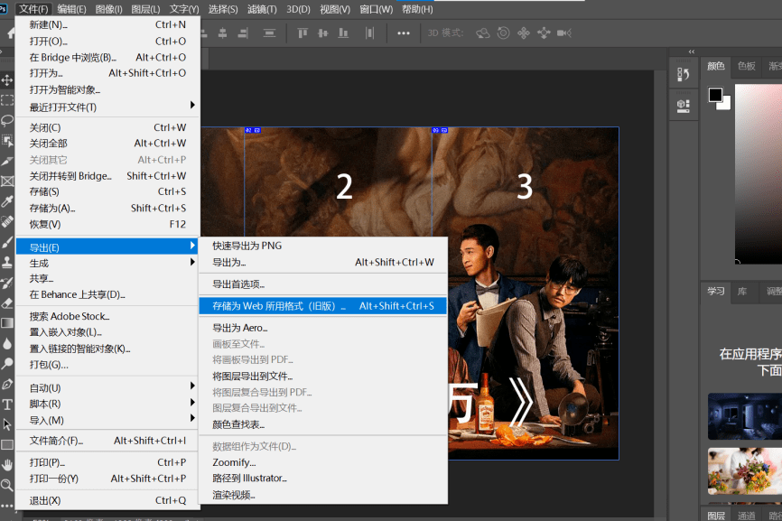 9、再点击【文件】-【导出】-【存储为web所有格式】。