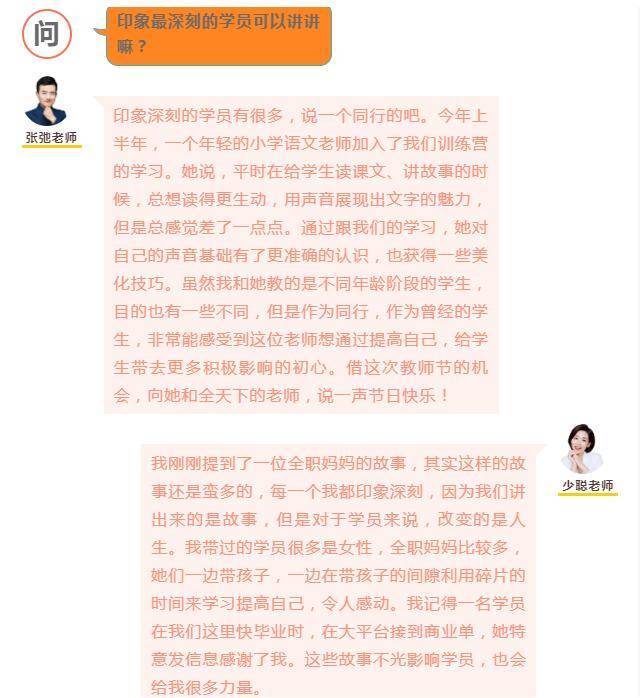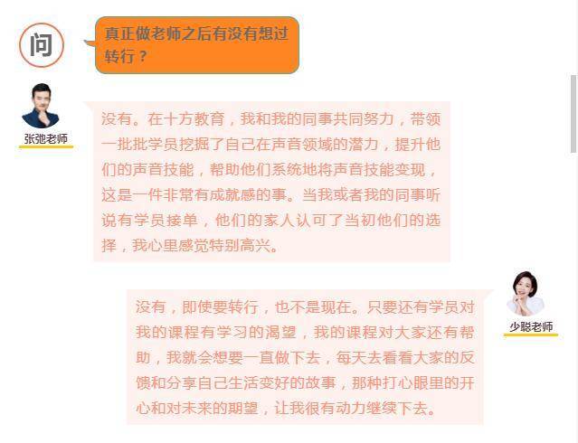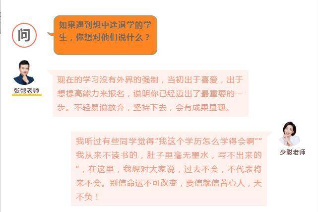 无论是“更贴近社会发展和领域深耕的需求”,还是“替大多数人发声,讲他们憋在心里的话”,都是两位老师在教育行业里坚持下去的信念。老师传授知识给予学员力量,学员的成长推动老师前进。正如德国哲学家雅斯贝尔斯所言,“教育的本质,是一棵树撼动另一棵树,一朵云推动另一朵云,一个灵魂唤醒另一个灵魂”。