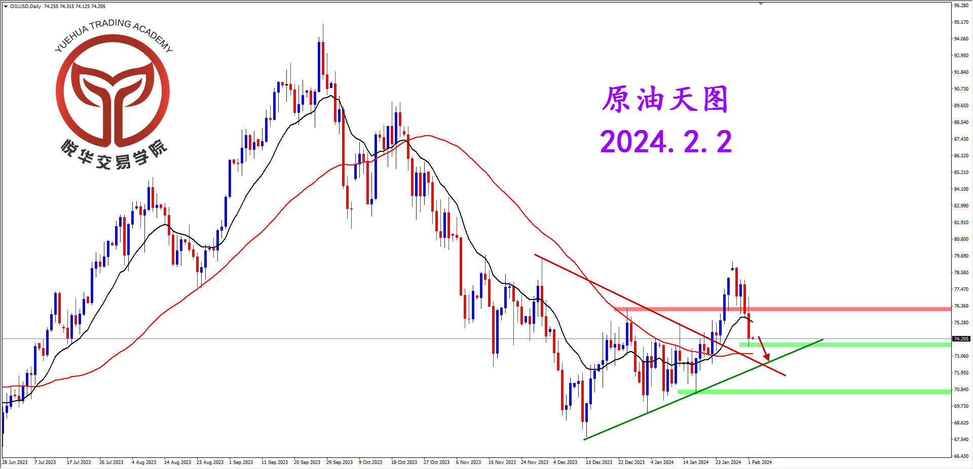 原油天图,昨天行情收出一根阴线,行情急转直下空头主导行情,只是下方格局空间暂时不多,有多重支撑位置,所以日内空头只能谨慎关注可能的走弱形态。