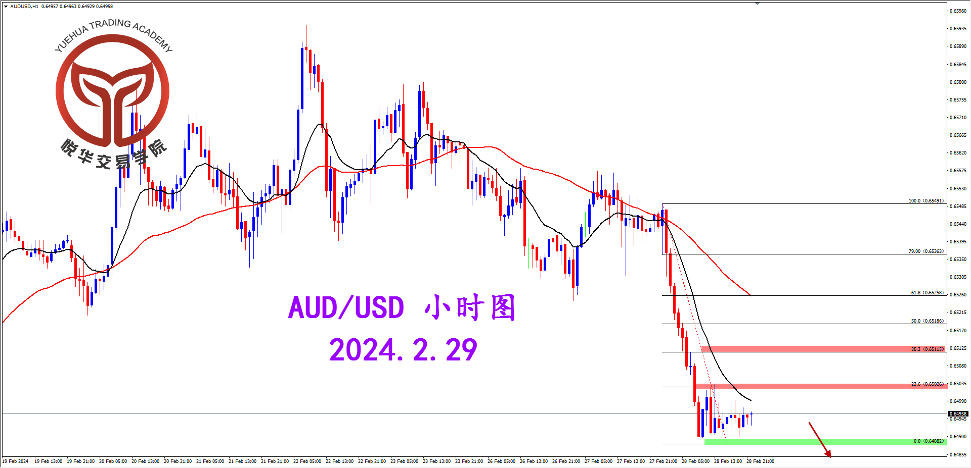 澳美小时图,行情这波空头暂时告一段落,市场在低位进行必要调整,后市空头情绪需要关注斐波那契的回调位置的遇阻表现,再关注一次可能的空头机会,搏取价格跌破关键支撑。