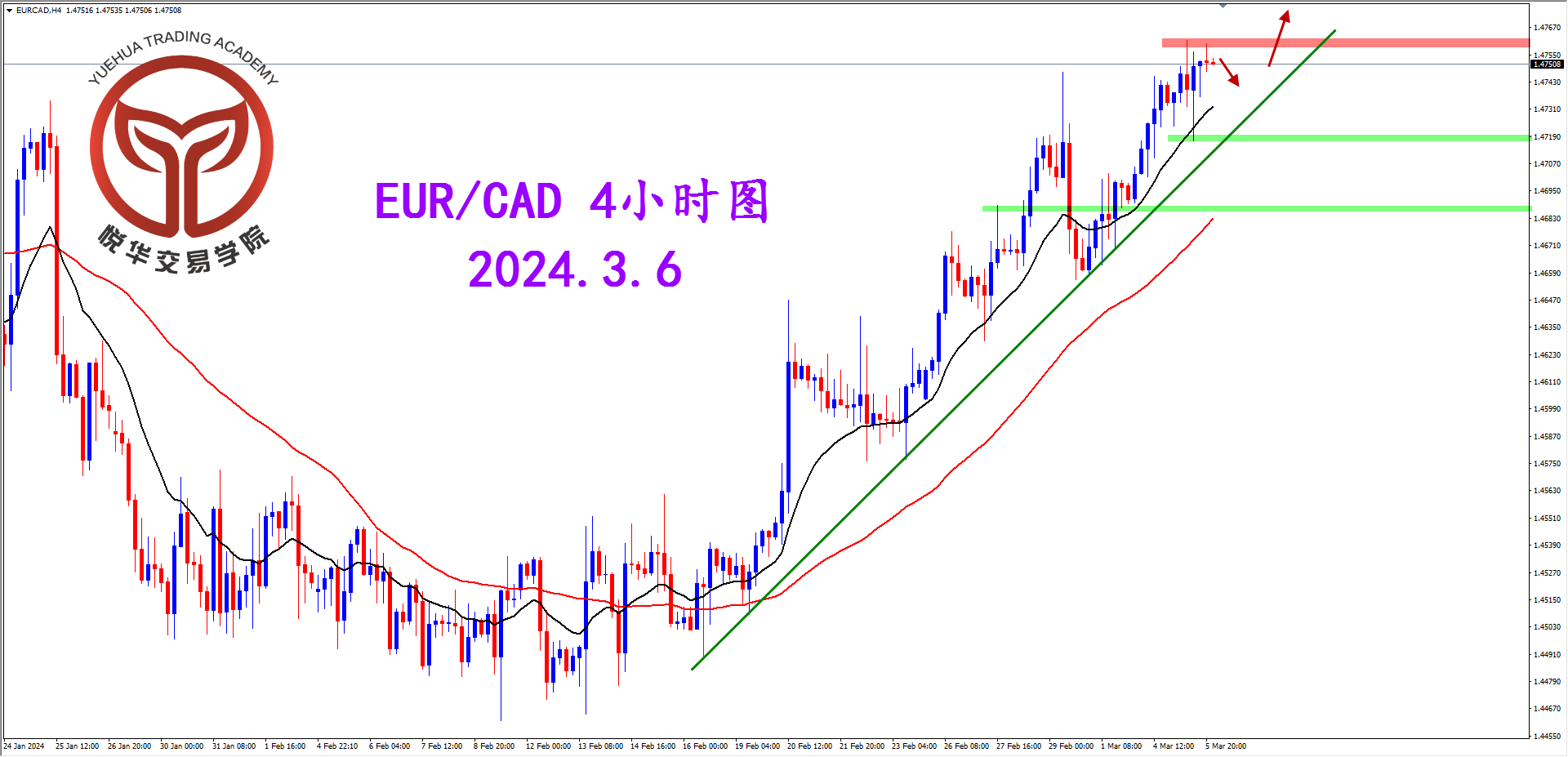 欧加天图,昨天行情收出一根小幅阳线,有冲击1.4763的动作,但在没有真正突破前还存在不确定性,如果短期能够站稳上去后如果还有空间的话可以关注破位后的多头机会。