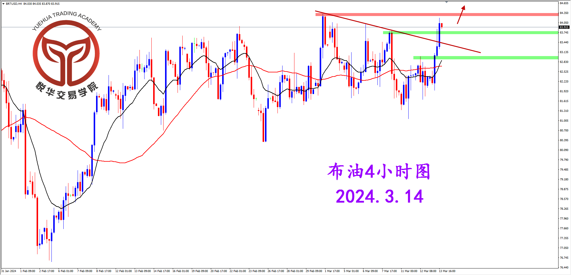 布油天图,昨日行情收出一根坚决阳线,但却没有直接突破84.23的水平压力位置,至于后市有无能力突破要看市场,而我们需要密切关注压制得失,密切关注突破后的合理做多机会。