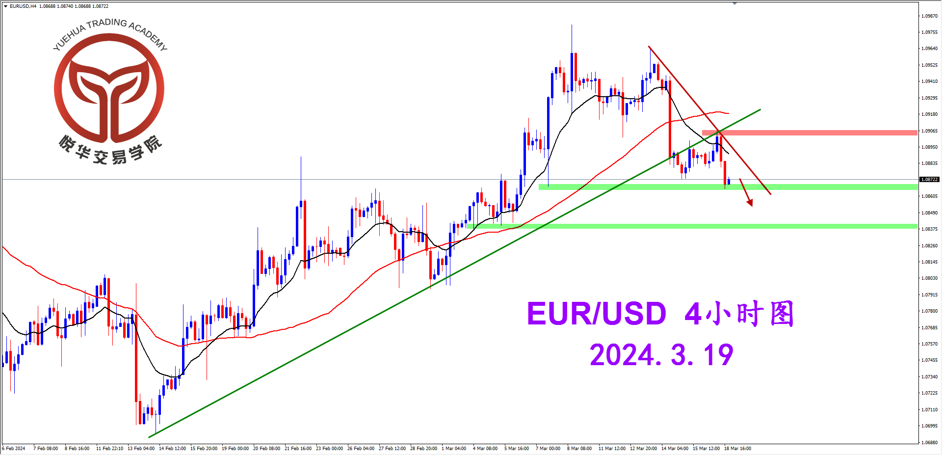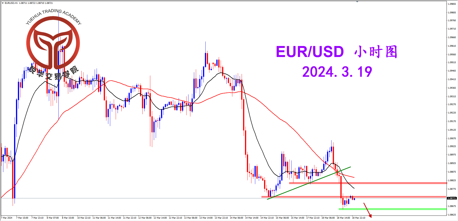 欧美天图,昨天行情收出小阴线形态,也是在回测了趋势线被跌破后的反压作用后遇阻,目前技术形态偏弱一些,只是下跌力度暂时不大,短期空头需要谨慎,没有合理机会也不要勉强。