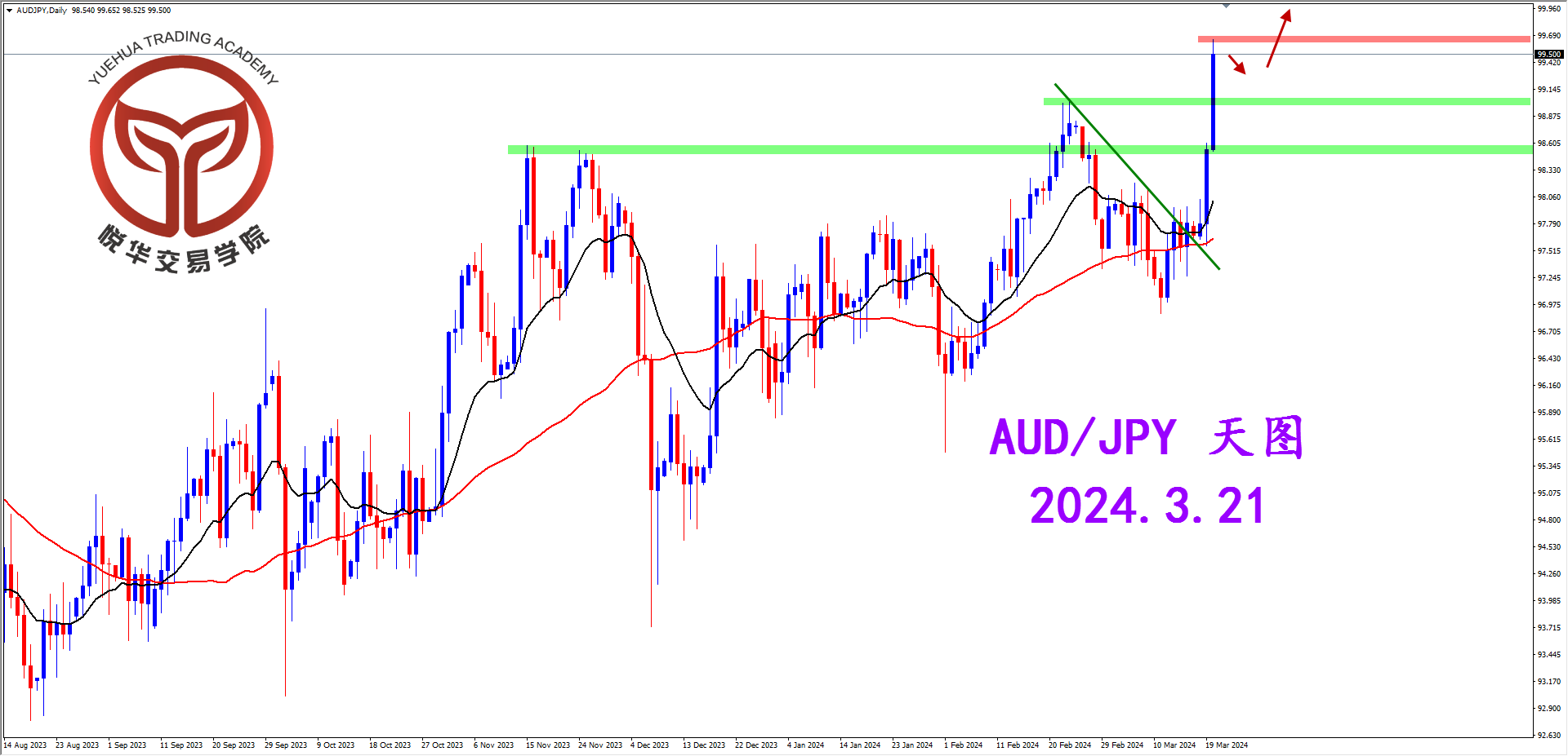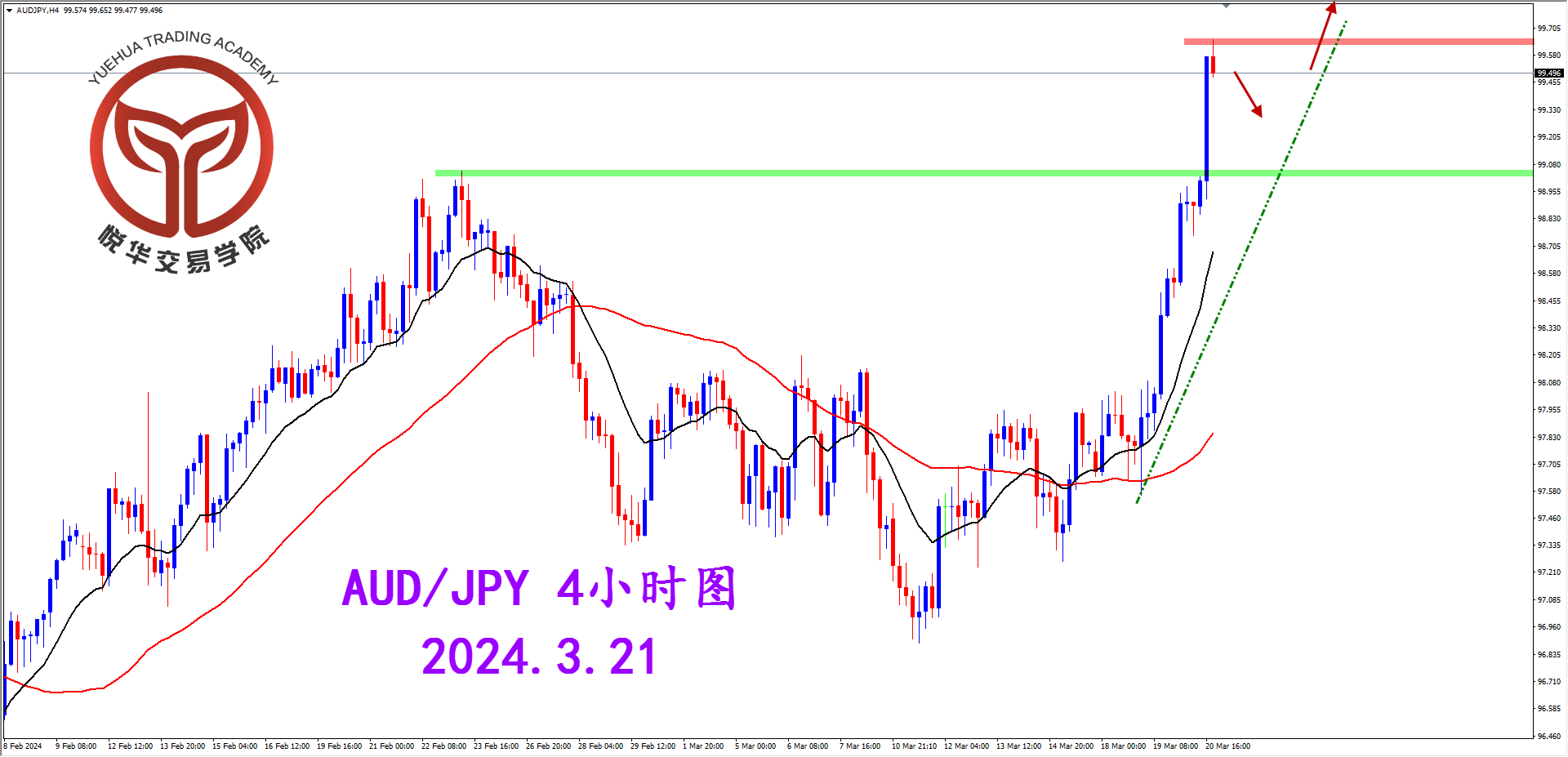 澳日天图,昨天行情延续之前阳线而继续走强,并且突破了关键压力位置,多头方向明显只是拉升极端稍有超买,后市需要等待更多充分调整才能继续关注做多机会。