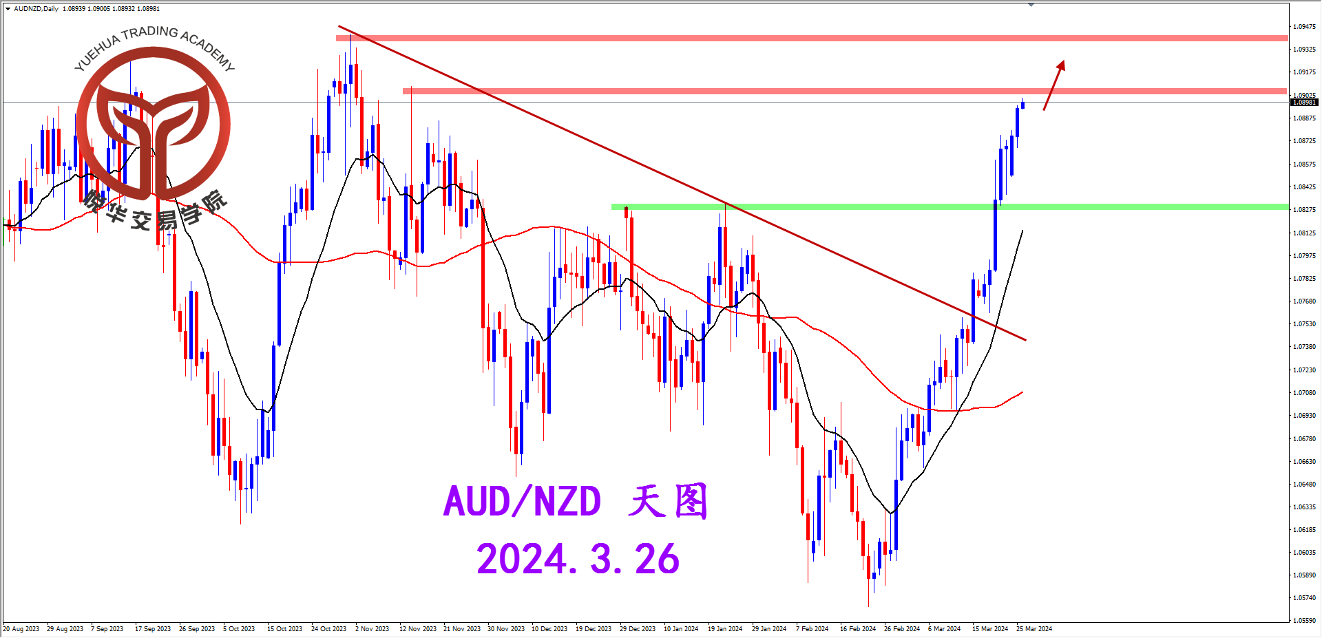 澳纽天图,昨天行情收出阳线形态,突破了前期高点压制,多头流向延续发展,虽然方向相当明确但市场超买的也是很明显,多头需要谨慎关注,在没有短期合理形态前不要追高。