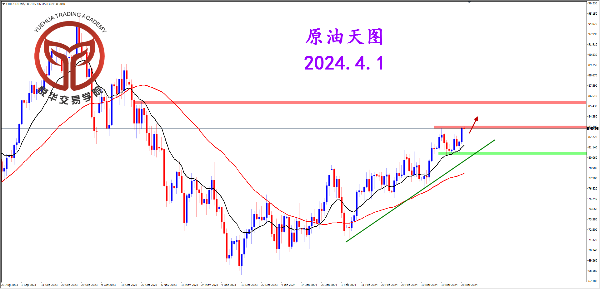 原油天图,行情凭借均线支撑而开始收出阳线,并且有突破高点的迹象,表现还算强势,所以可以谨慎的关注一次短多机会,目标位置逐步关注,谨慎持有多单。