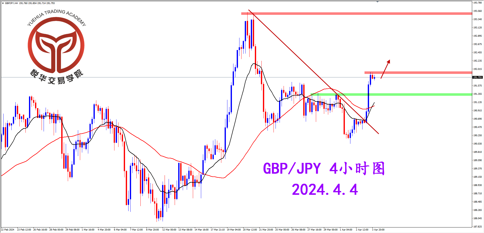 镑日4小时图,一系列的压制作用均被强势突破,目前短期多头方向明显,但需要一些调整动作,否则即便短多也不好做,那些等待合理形态出现。