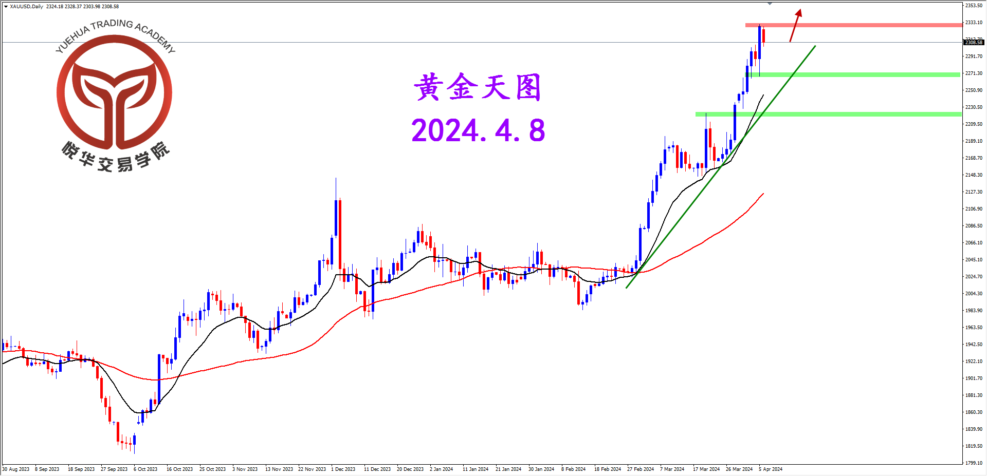 现货黄金天图,多头经过一段时间的调整后再度发力拉升,并且不断刷新历史新高,目前只保持多头思路就好,但需要耐心等待合适时机入场,不要冲动追买。