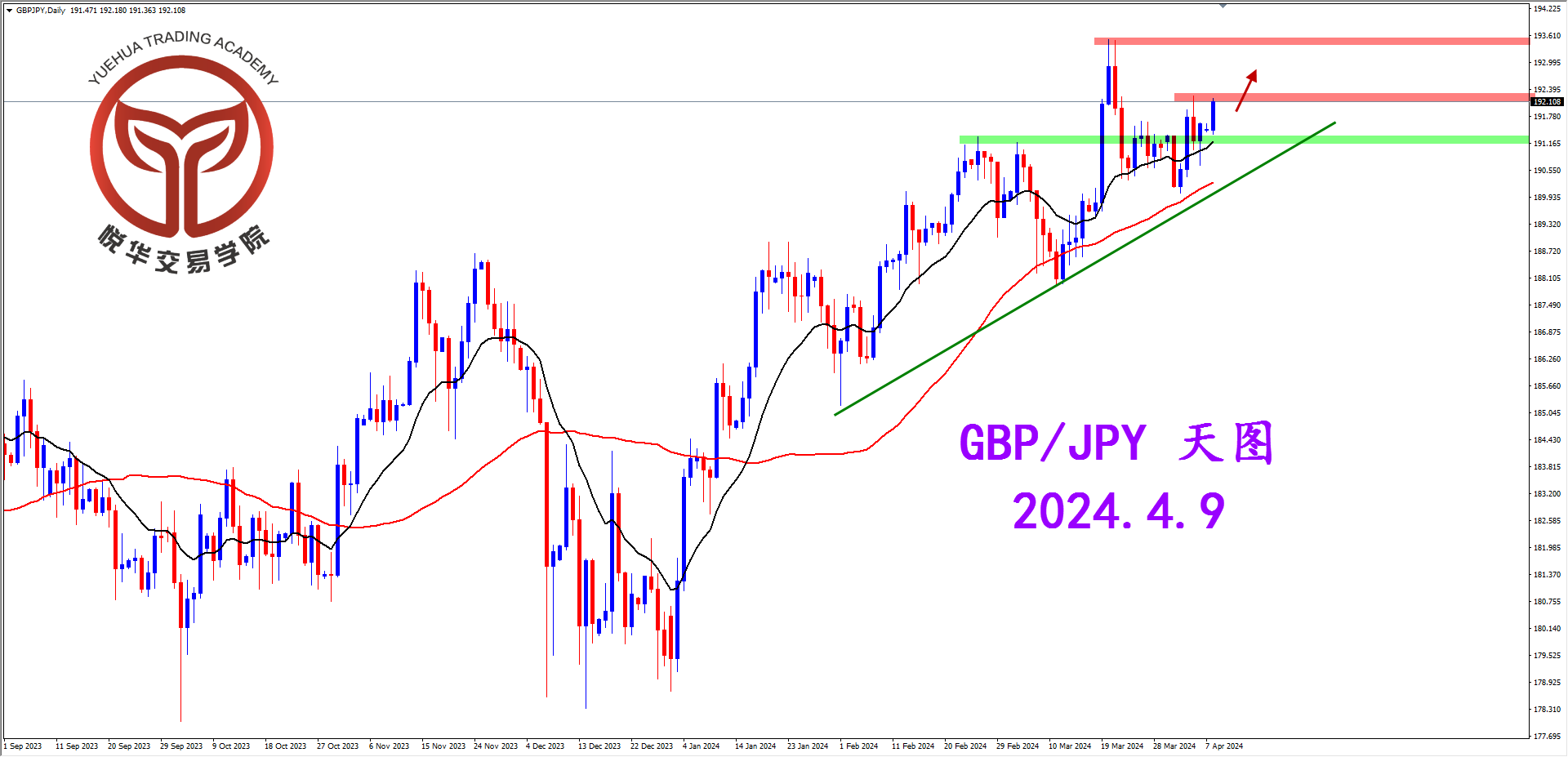镑日天图,昨天行情收出一根坚决阳线,直接顶在短期水平压力附近,如果日内行情能够强势突破的话那么多头有望走强一段,但如果冲高大幅回落那么就继续观望等待。