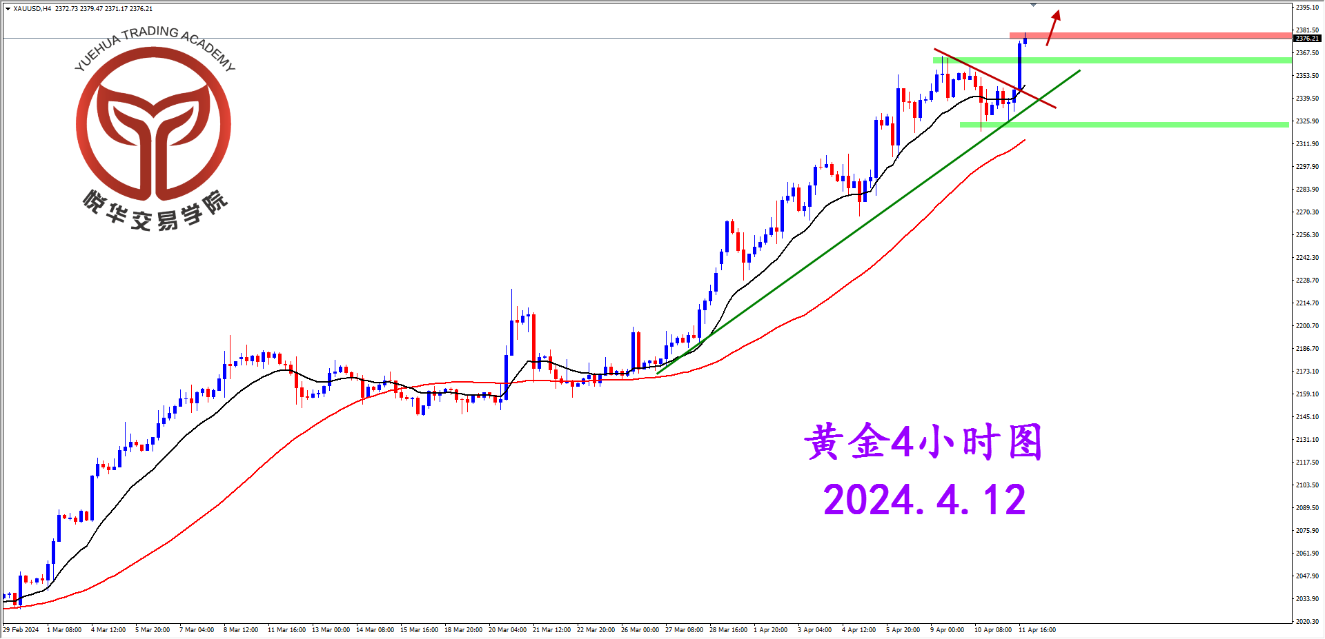 黄金4小时图,行情强势突破了回调压力线和2365.2的水平压力位置,多头再度启动拉升走势,空仓的投资者密切关注合理的多头形态。