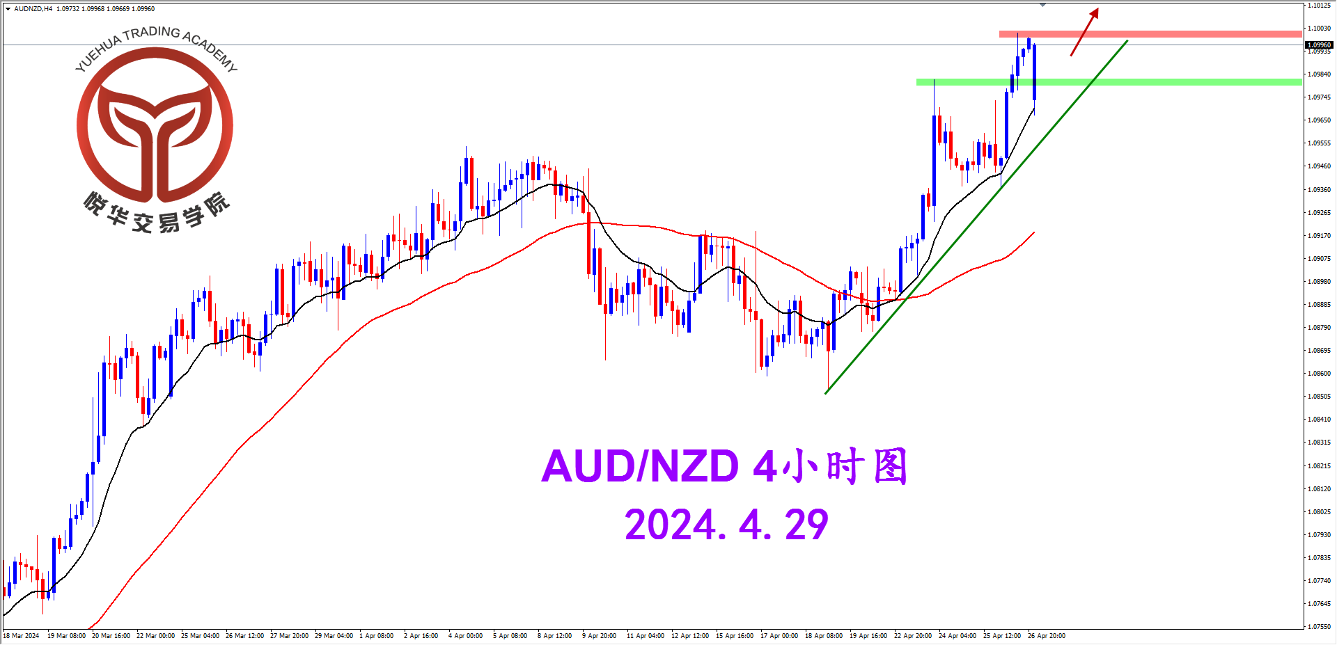 周线级别坚决阳线表现非常强势,在多头占据主导的市场环境下只关注顺势的多头就好,而目标位置也是分批关注,现阶段看1.1053-1.1083一带,如能持续突破则拿住多单让利润奔跑。而入场位置和形态则关注小时级别的合理位置形态。