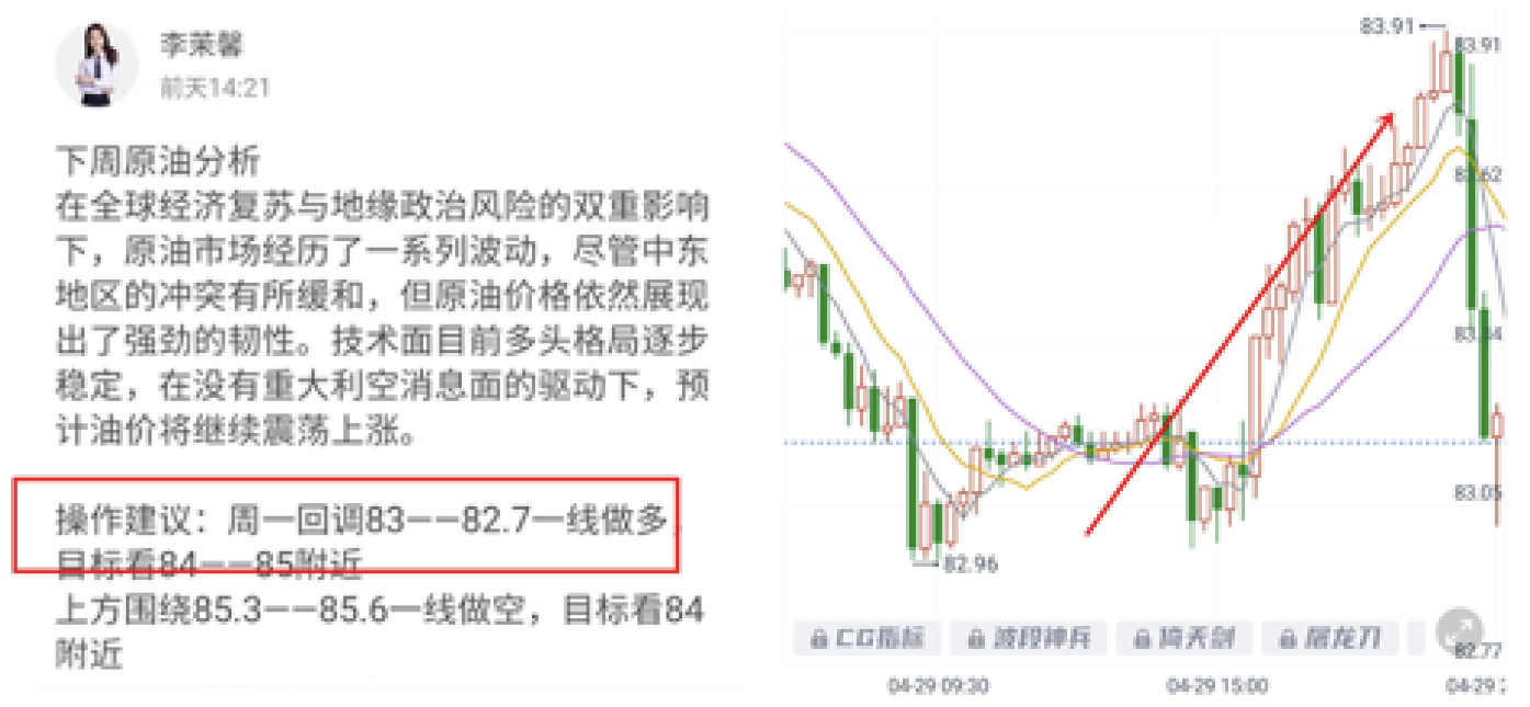 原油周末便给到围绕83一线做多,最终也成功到达第一目标84附近。