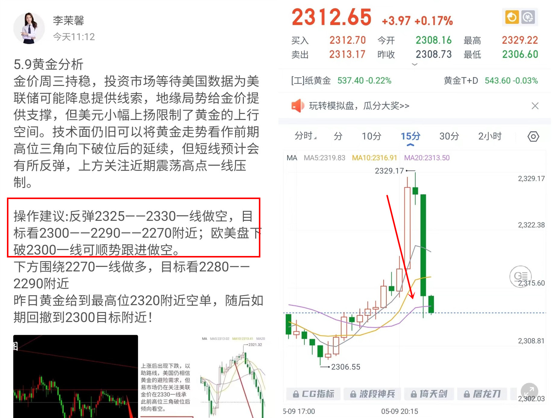 昨日黄金美盘一波拉升给到我们空单进场机会,盘中成功获利超10点,并且全网通知减仓离场!