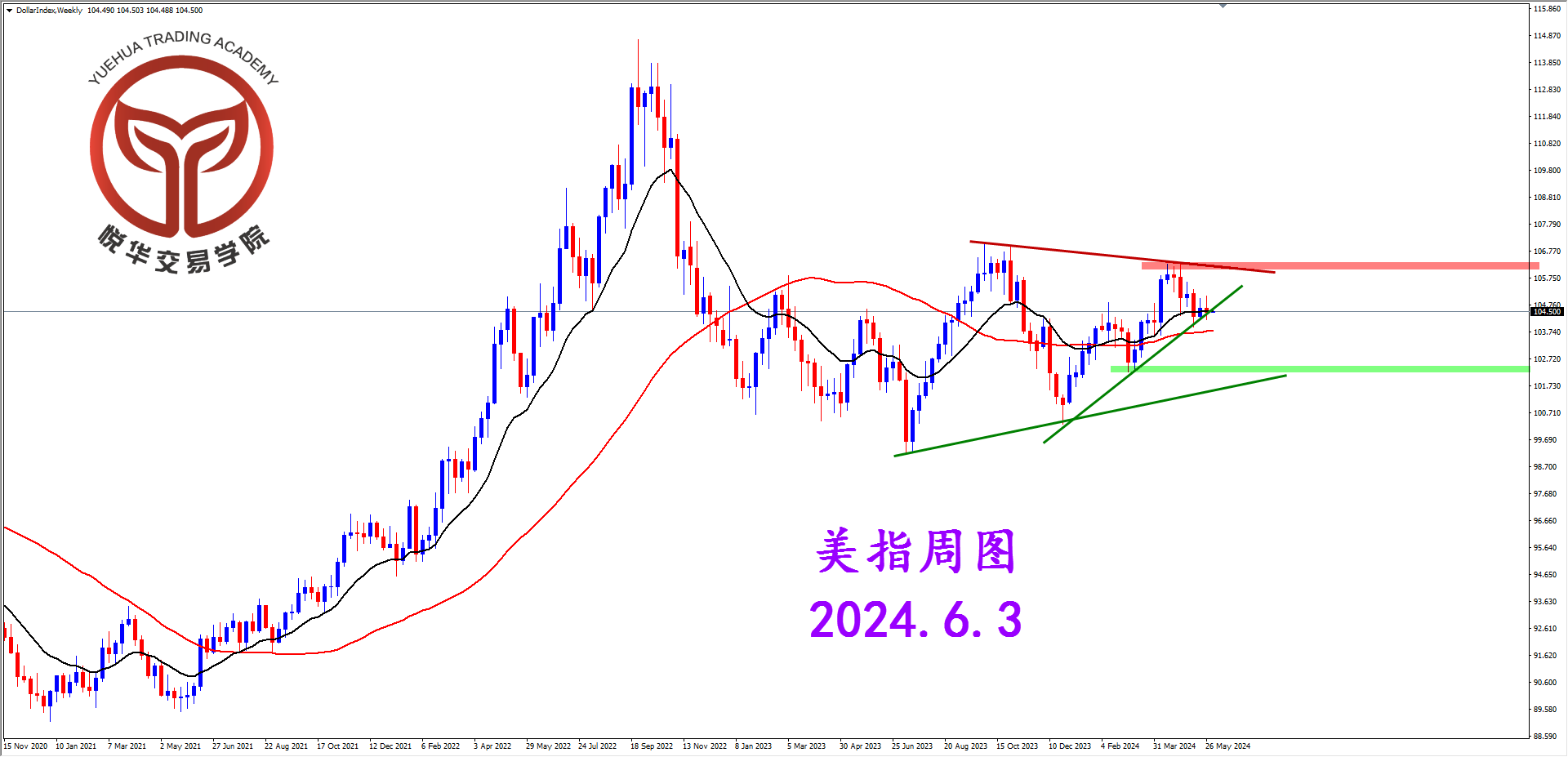 美指周图,从周图看行情已经连续多时持续调整,均线也基本维持走平状态,价格来来回回的拉扯却没有选择方向突破,所以目前对于美指的态度只能是观望,并且不要主观猜方向,概率犹如抛硬币。
