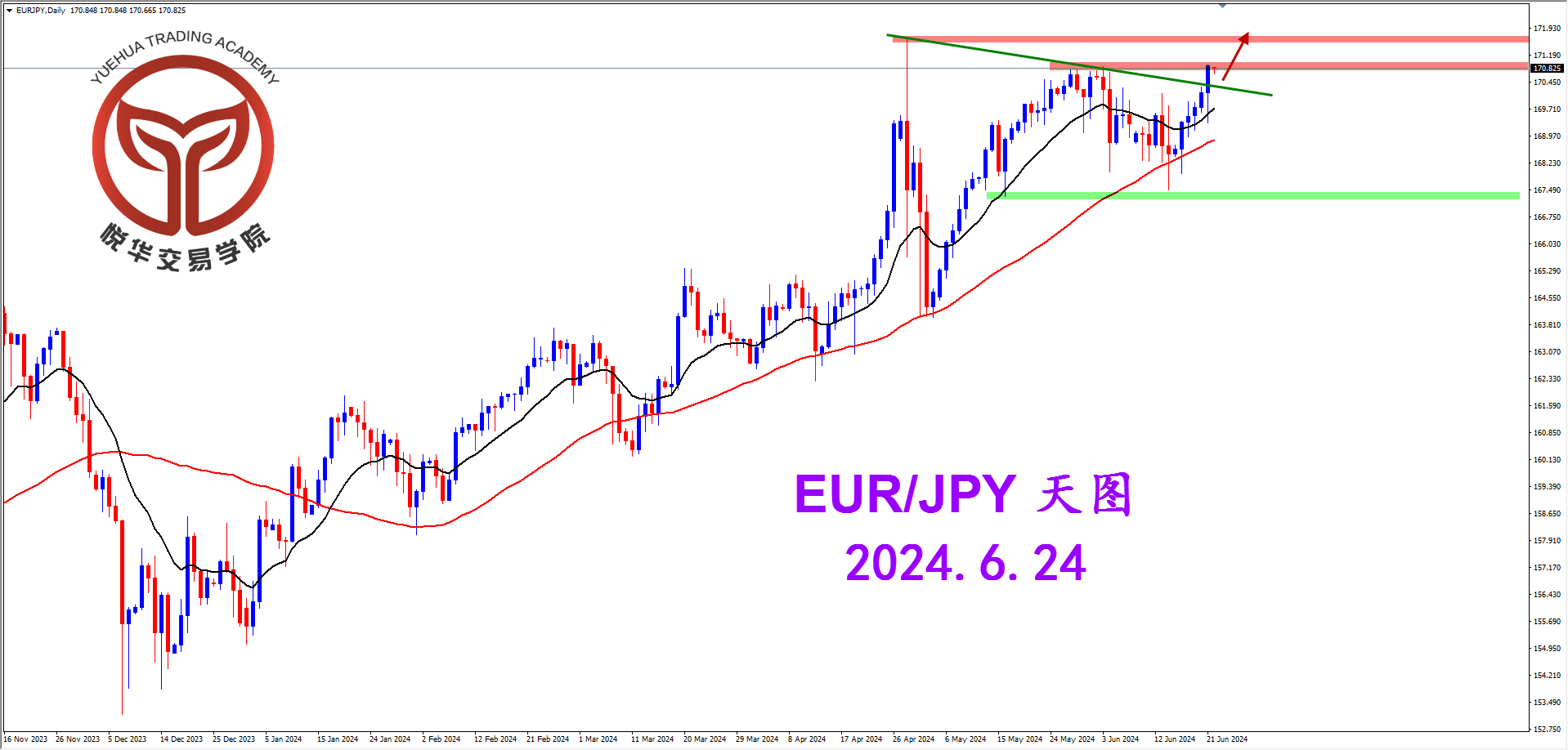 欧日天图,多头拉向上突破了三角形上方压制,目前暂时处于水平压力170.88附近,密切关注短期进行必要调整后的再度破位拉升机会,搏取强势突破171.60一带压制。
