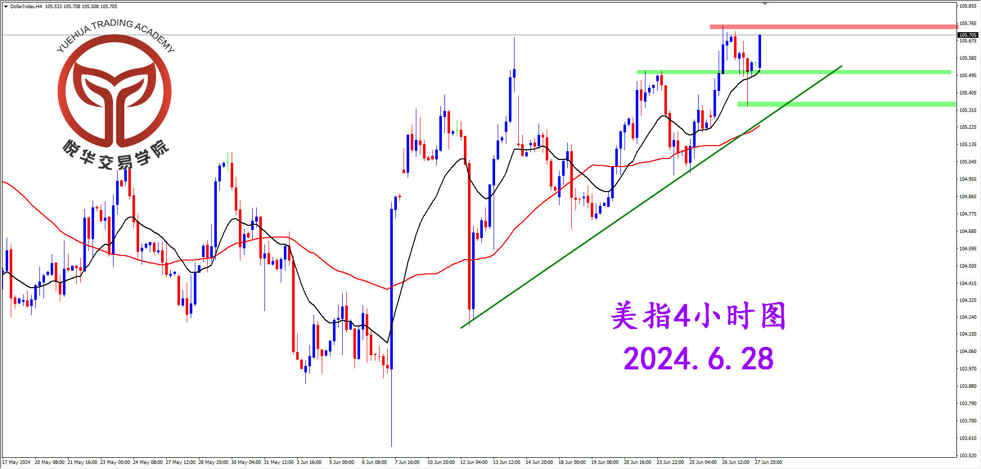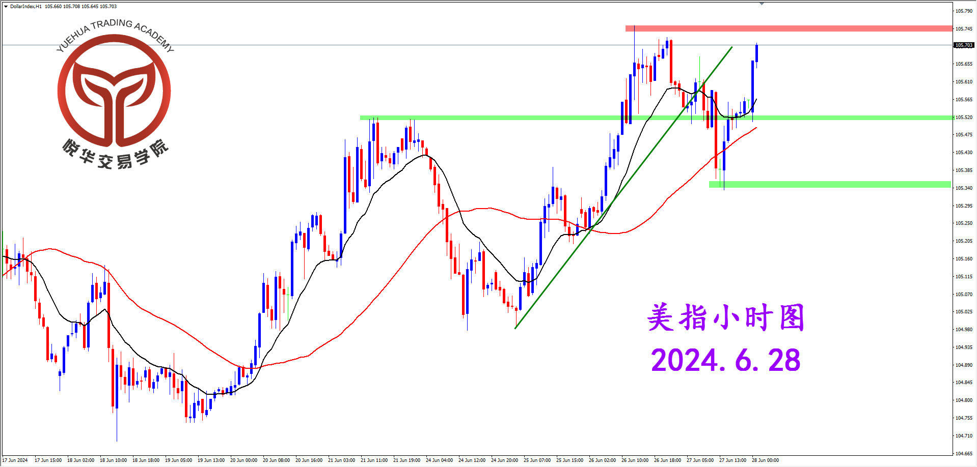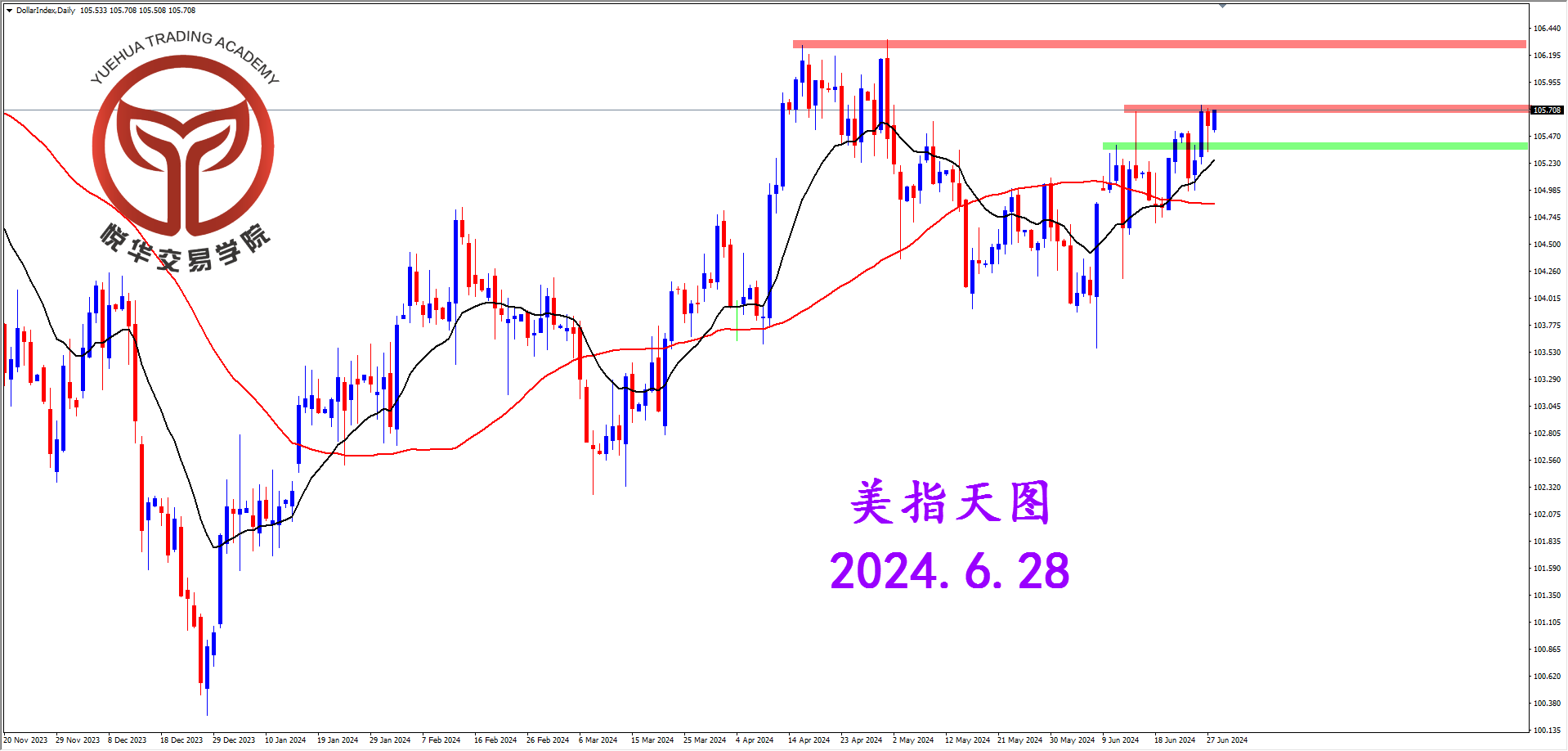 美指天图,昨天行情在105.75一带收出不缺的蜡烛形态,市场还是表现出了明显遇阻形态,前一天的坚决阳线也没能助攻多头拉升,现阶段只能观察拉升突破与否。