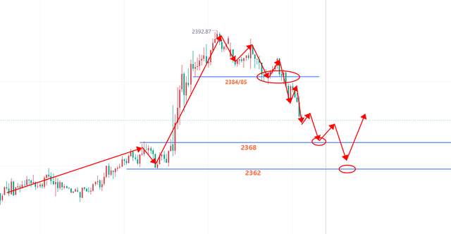 1,短线:短线2377直接沽空参与,破2385损,目标2368,2362!!! 机会指数★★★★★;安全指数★★★★