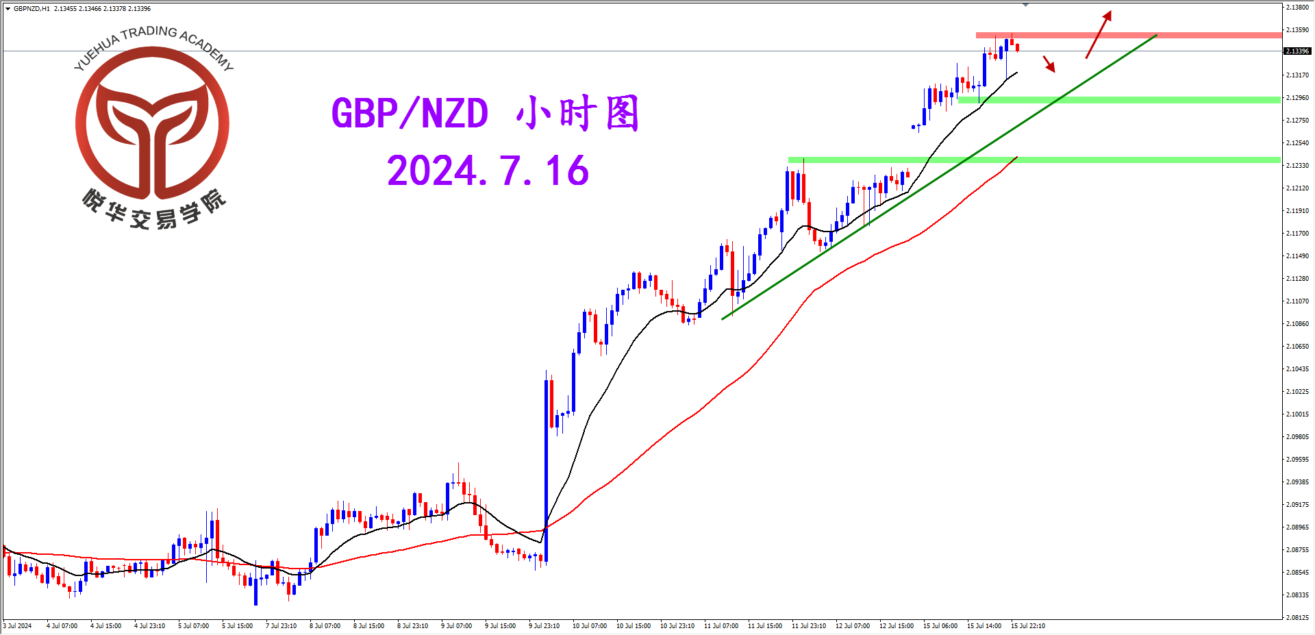 镑纽的这波从上周延续下来的多头表现相当强势,只是有超买的表现,主要表现在于昨日虽然收出阳线但小时级别的蜡烛形态不是很坚决,所以关注多头的同时需要注意必要且充分的调整形态,等待合理的买入机会。
