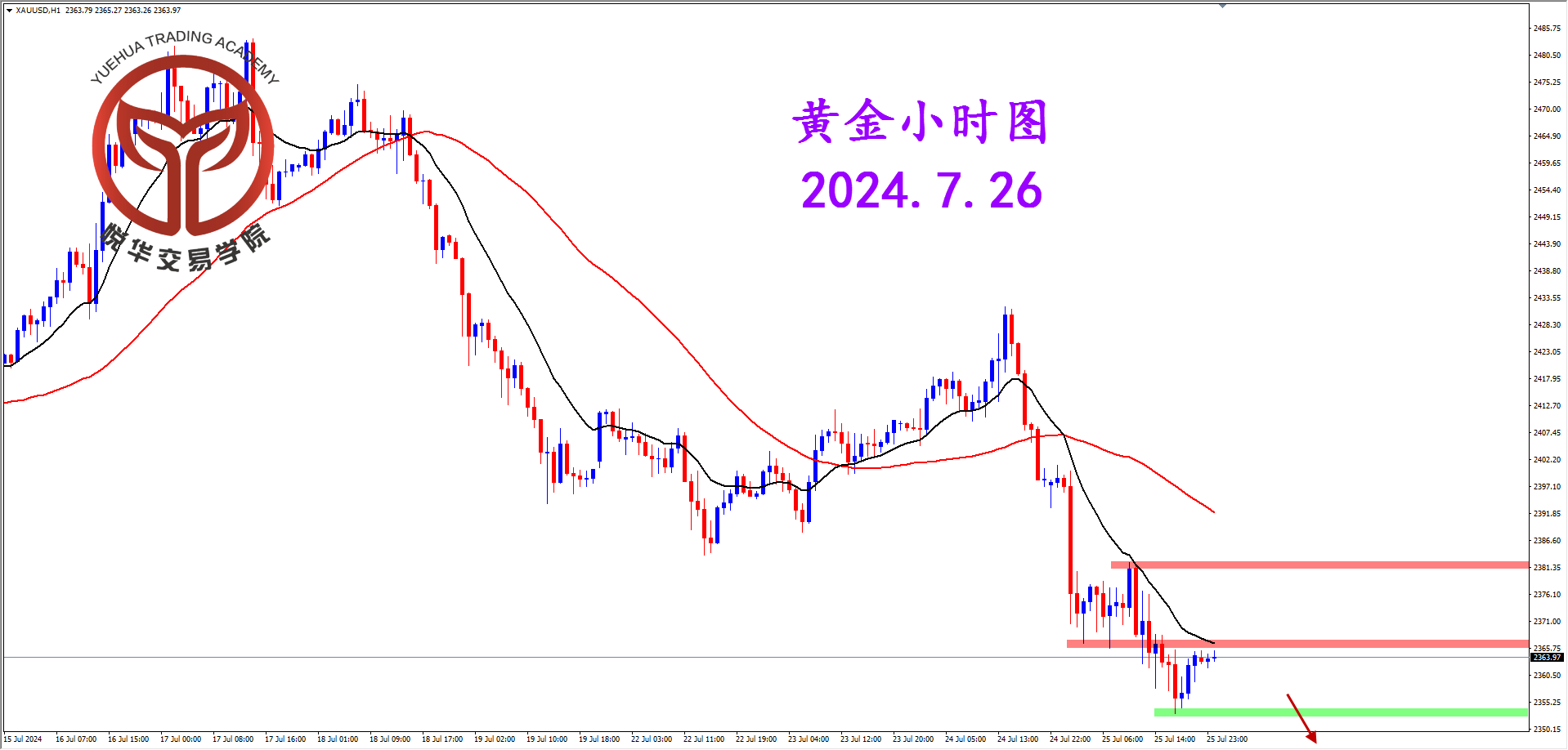 现货黄金小时图,短期主趋势运行一段空间后目前市场正在进行必要调整,而调整后能否坚决跌破天图支撑要看市场表现,而短期需要等到较为合理的空头形态,否则不要勉强。