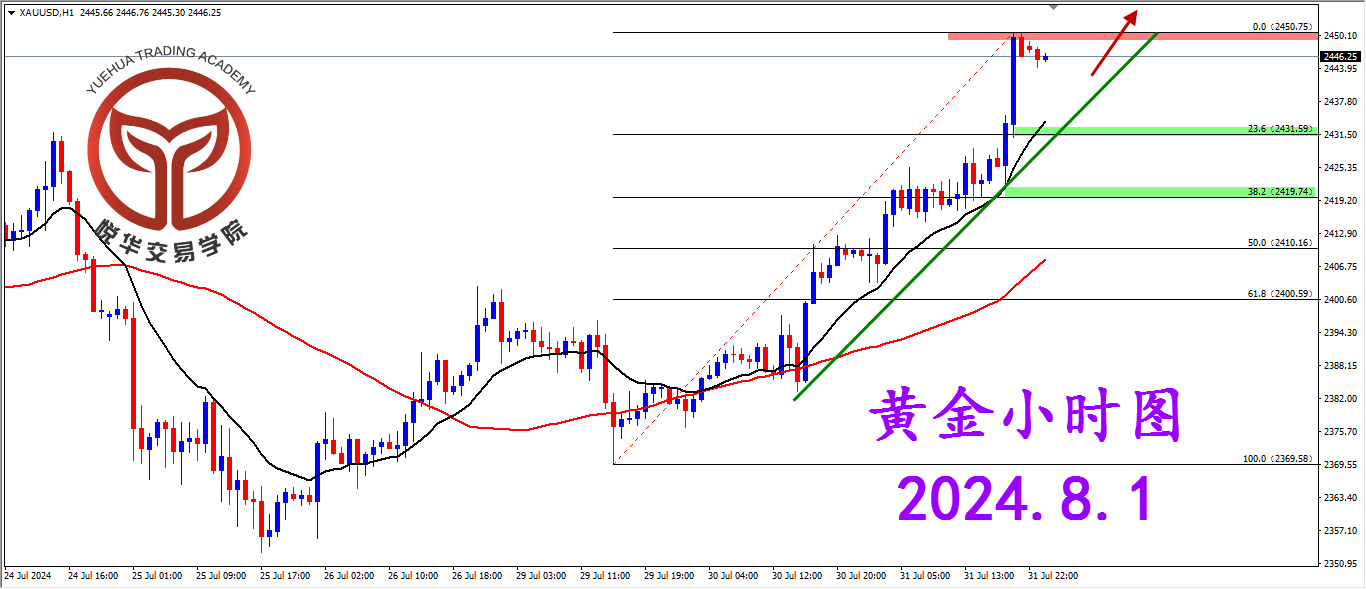 现货黄金小时图,行情结束调整后多头流向已经形成,目前均线包括趋势线均有利于多头发展,只是需要一些调整才能介入,凭借均线和趋势线的支撑作用关注多头机会。