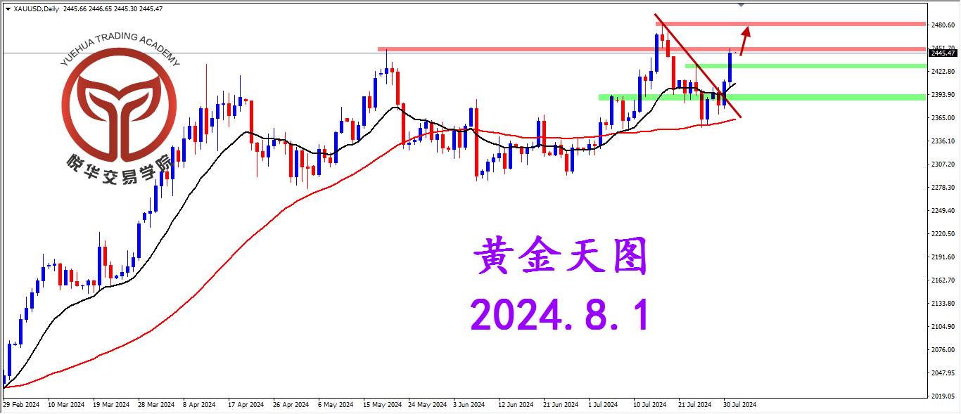 现货黄金天图,昨天行情收出坚决阳线,并且突破了前期高点的压制作用,后市有一定机会继续向上测试更高压制,所以日内适当关注一次短期调整充分后的合理买入形态,目标先看2483一带,如能强势突破则看更多空间。