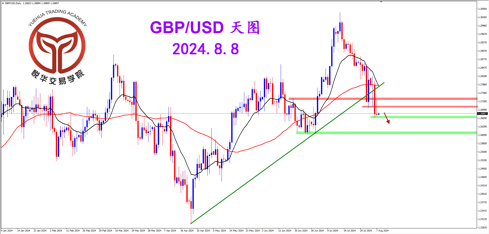 镑美天图,昨天行情收出冲高遇阻的不确定的蜡烛形态,结合之前的蜡烛形态表现判断目前行情走向偏空,后市密切关注水平支撑的得失表现,如能坚决破位有望下跌一段。