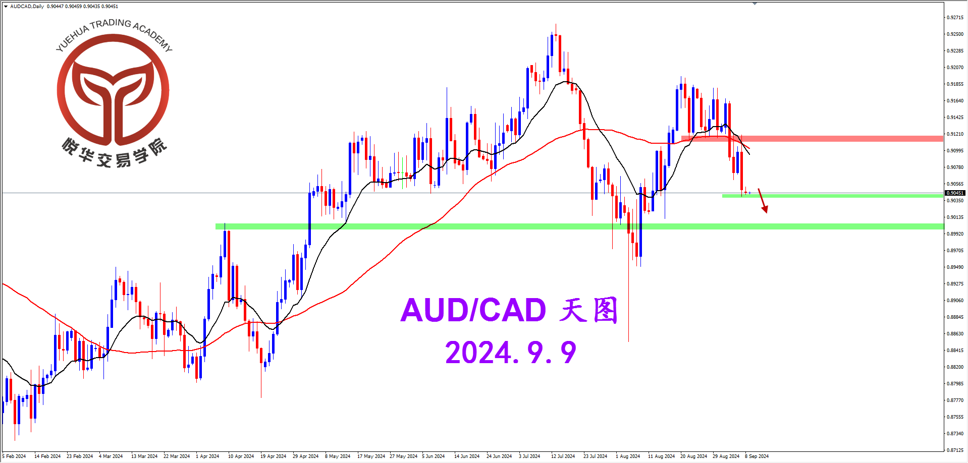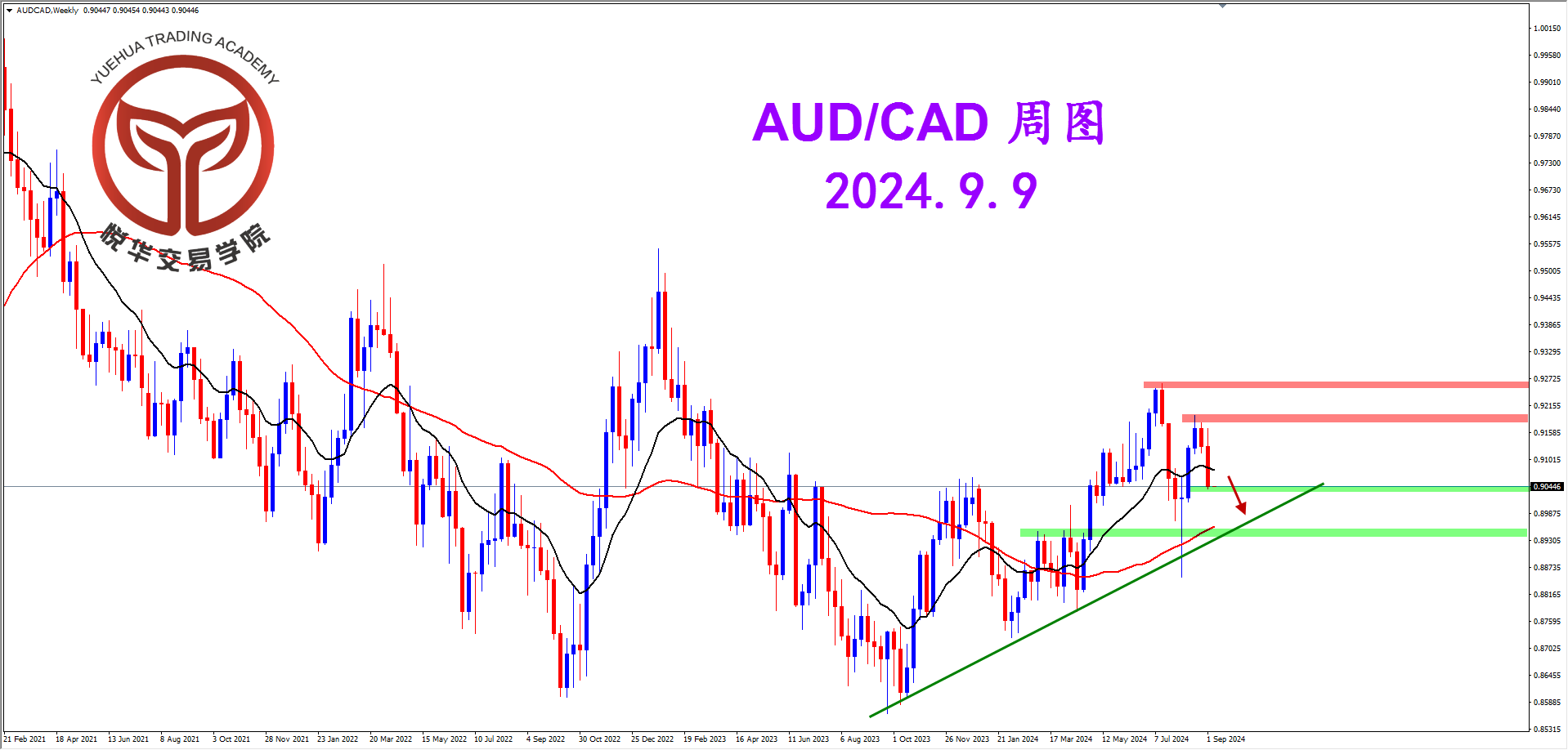澳加周图,上周行情收出一根较为坚决的阴线,也是在数据的加持下坚决收弱,目前的形势格局有利空头发展,所以按目前的形势本周需要保持空头方向,寻求合理的空头机会。