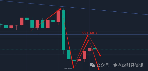 建议原油反弹到上方68.1-68.3分批空,止损69.3,目标66.8-67;(策略建议仅供参考,盈亏自负,做单严格做好风控,设置止损和目标位置,杜绝扛单)