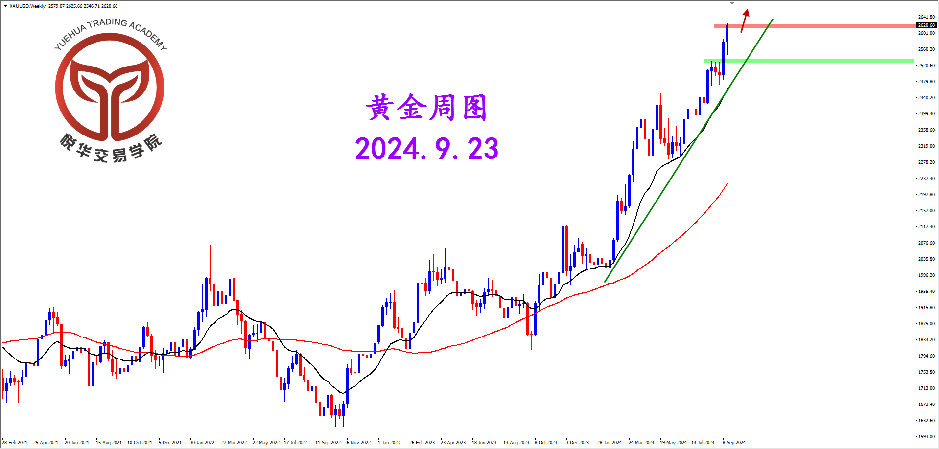 现货黄金周图,上周行情继续拉升阳线形态,目前多头势不可挡,主要是技术面于基本面相配合多头走势,所以后市继续保持多头思路,寻求合理的多头形态。