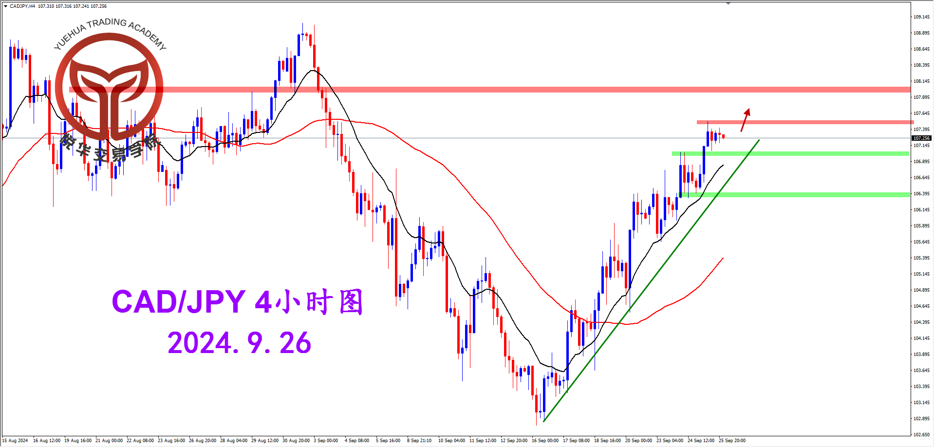加日天图,昨天行情收出较为坚决的阳线形态,多头还有着较为坚定的表现,有可能继续向上去测试高点109.00的水平压力位置,只是这波多头虽然强势但过程曲折,所以持单不宜,且持且珍惜。