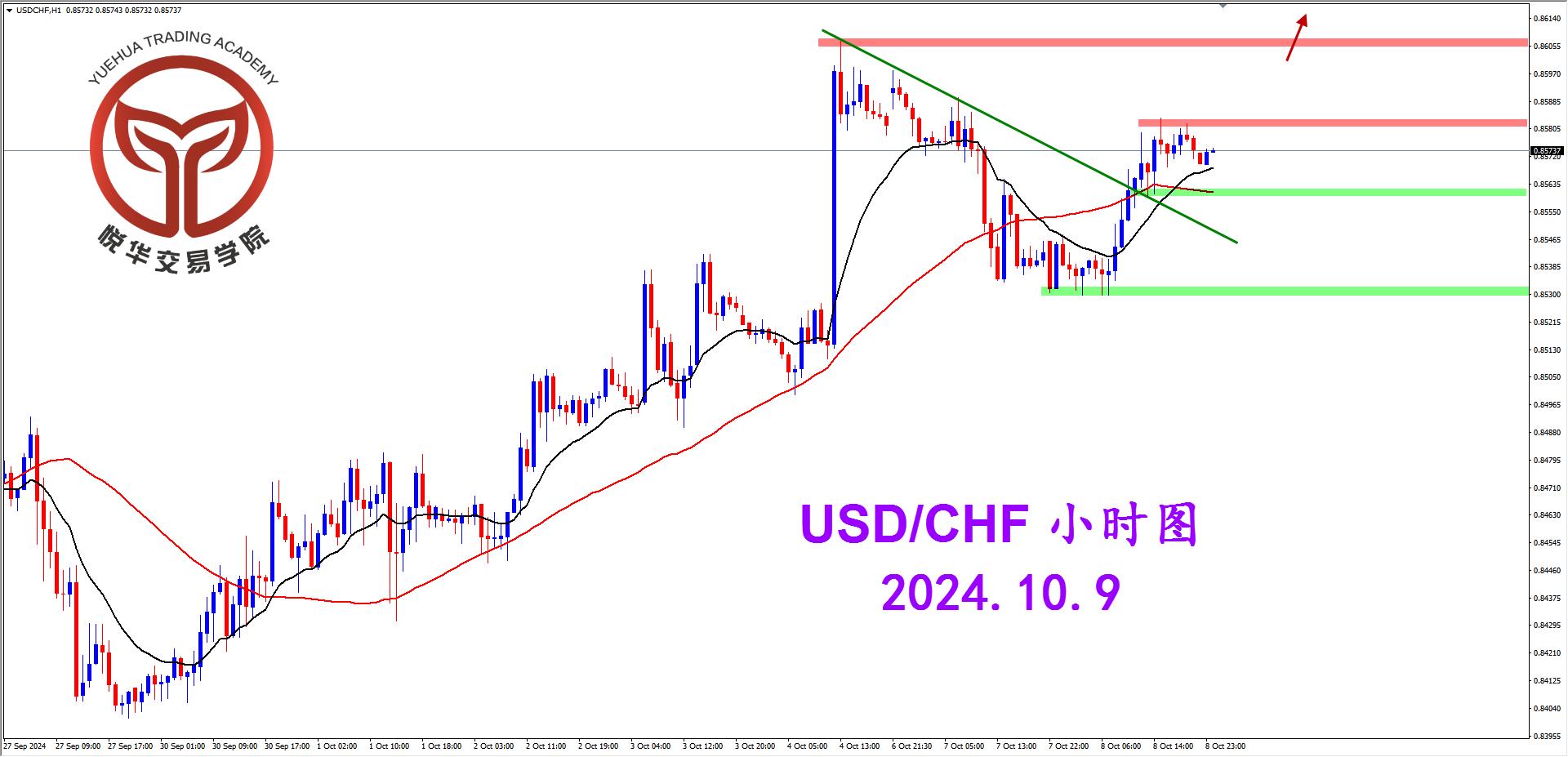 美瑞小时图,目前回调压力线被突破,但市场并没有直接拉升,处于0.8583一带短期压制调整,能否关注该压制突破做多还要看市场表现,否则还是看更关键压制0.8607的合理多头形态。