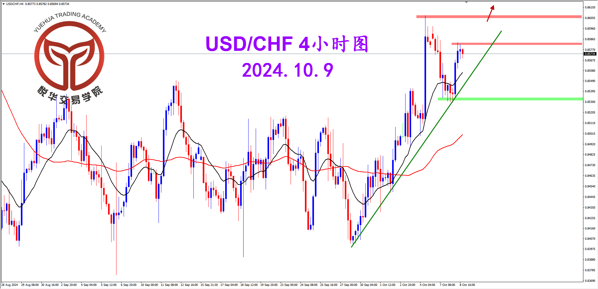 美瑞4小时图,趋势线形成支撑,行情极端回落到支撑位置后企稳拉升,但由于企稳点较低,直接拉升不宜追买,密切关注0.8583短期压制表现,以及0.8607关键压力位置表现形态,关注多头机会。