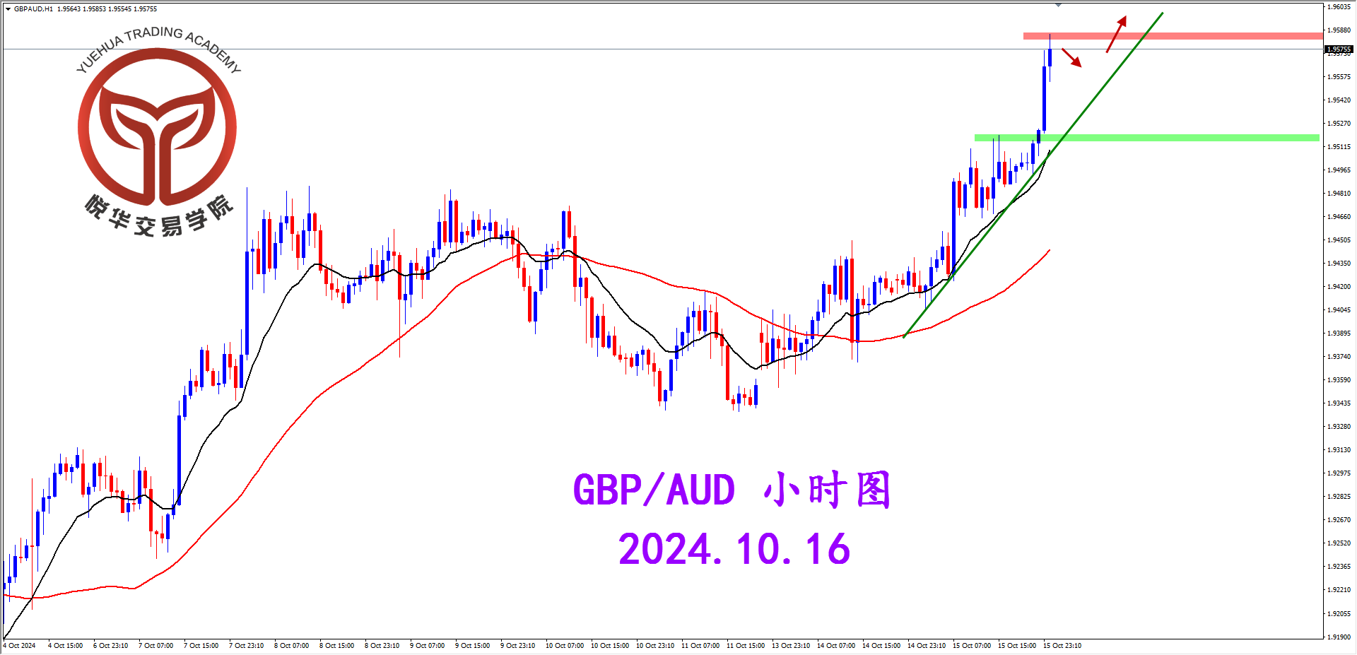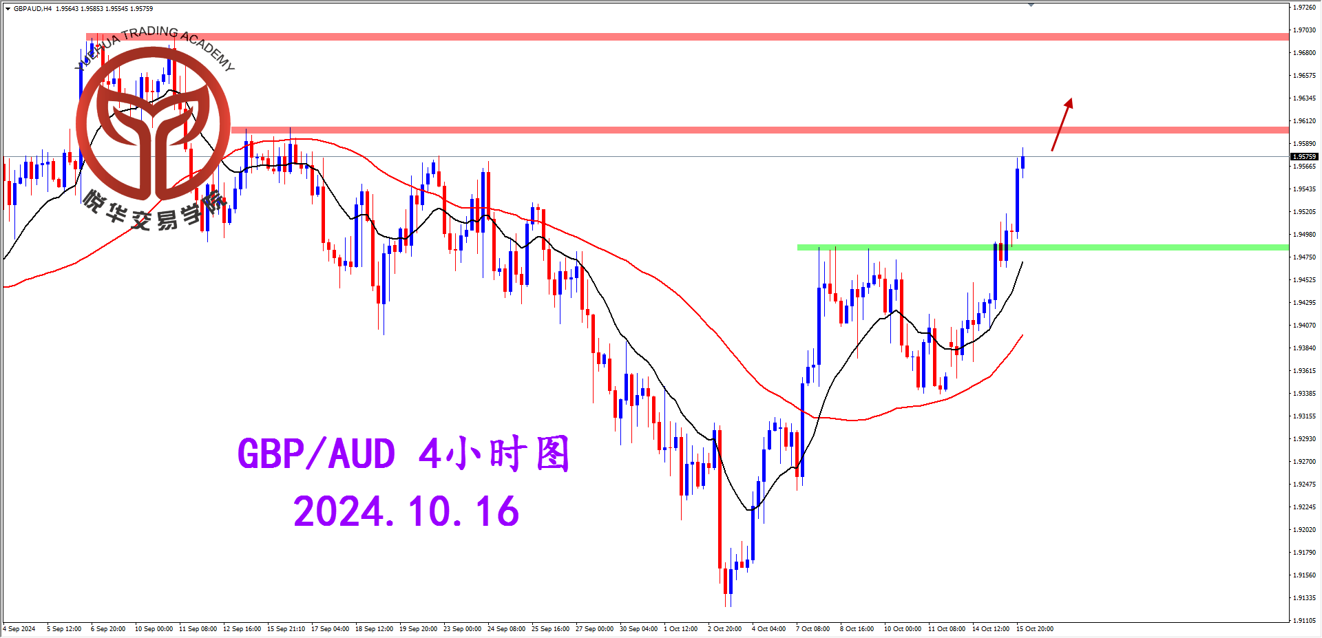 镑澳4小时图,行情经过复杂的调整后展开强势拉升,多头情绪来袭,密切关注1.9578-1.9604一带的调整过程,直接突破不要追买,注意交易节奏。