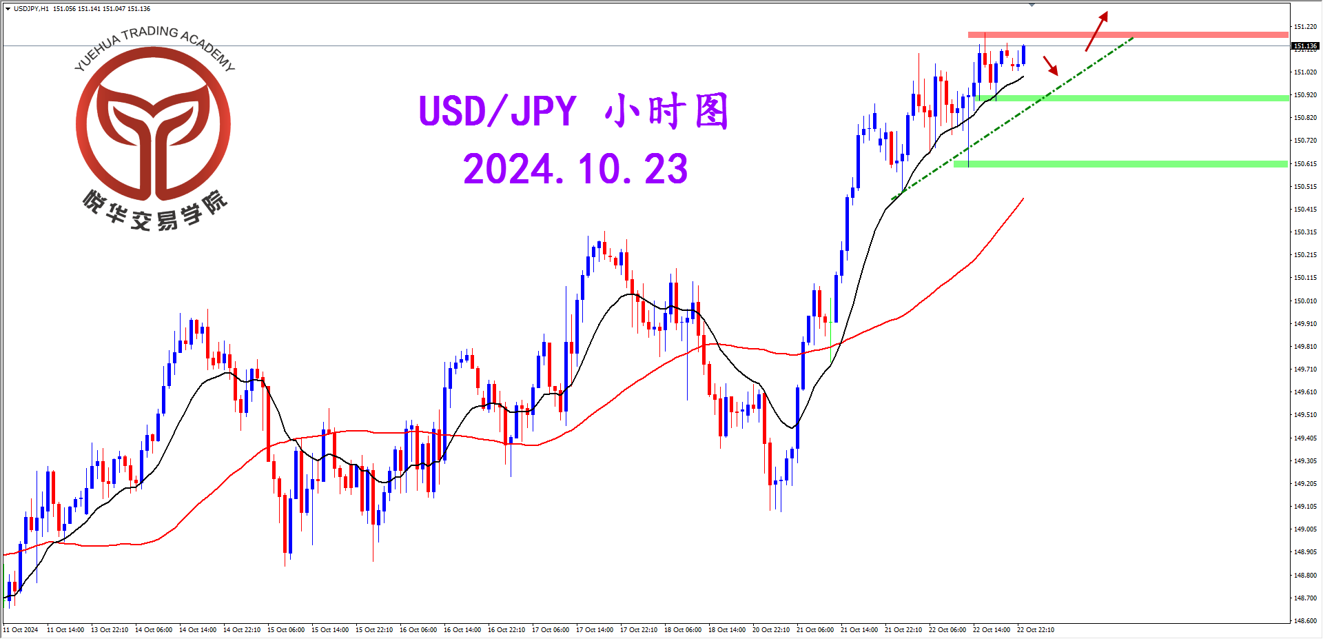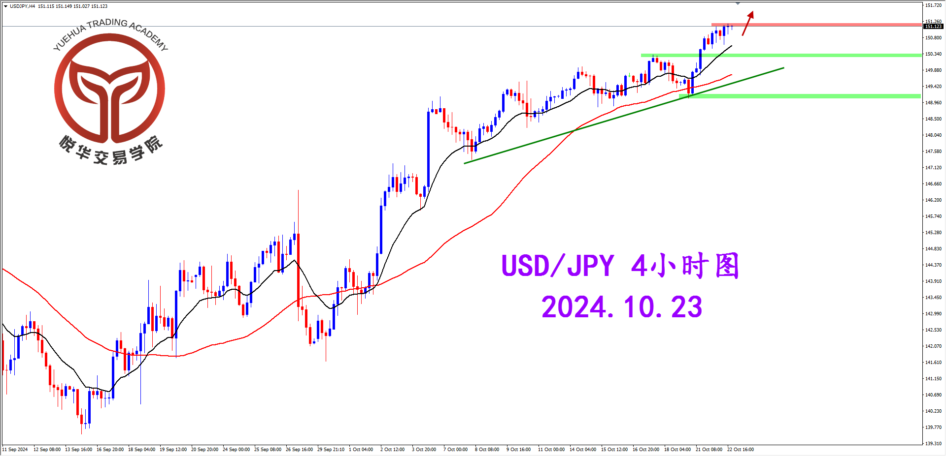 美日4小时图,该级别就可以发现这种纠结的向上过程,特别是最近的蜡烛形态更加的纠结,后市可能还要回踩15EMA均线支撑而后才有可能突破快速拉升。